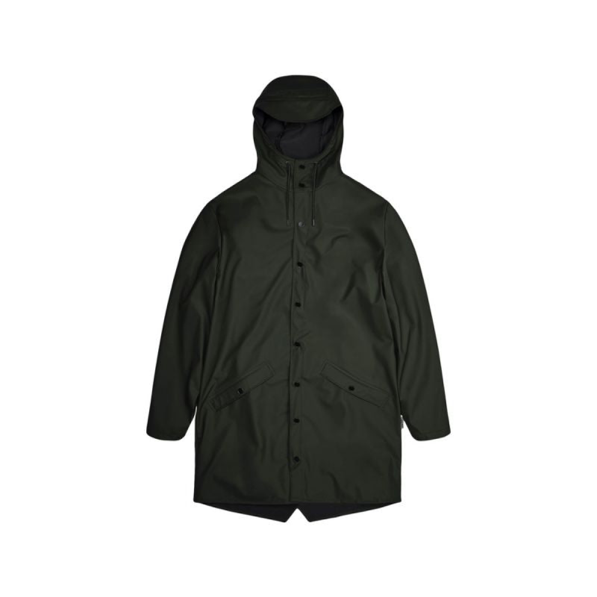 - The Long Jacket is a longer version of the classic Rain, Jacket design. This always contemporary unisex rain jacket delivers high functionality in a minimalist silhouette. Features include double-sealed diagonal flap pockets, adjustable cuffs and fishtail hem.