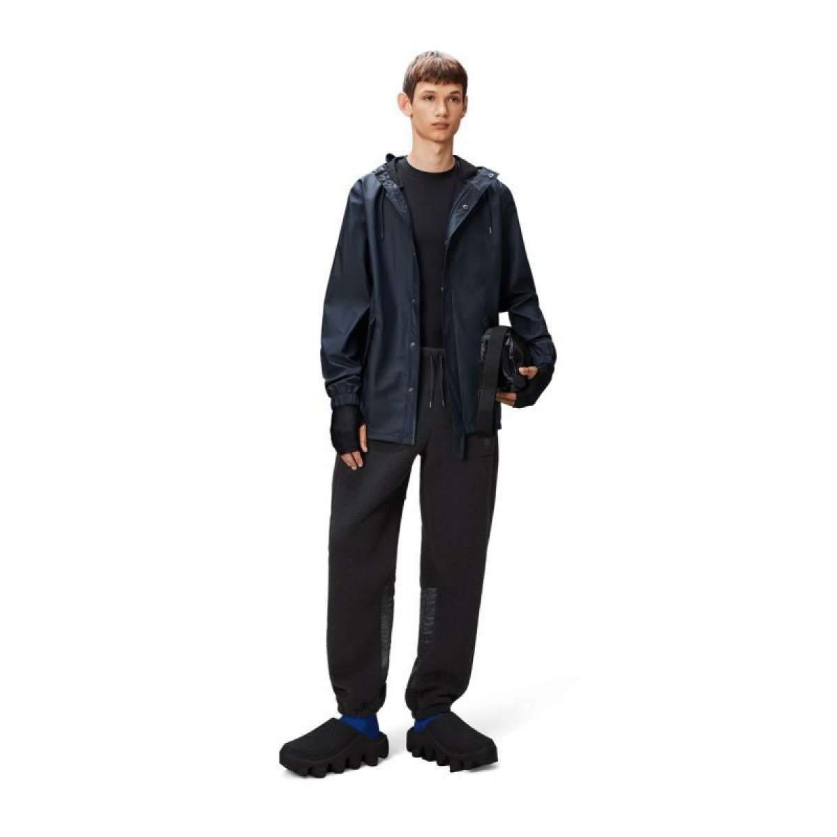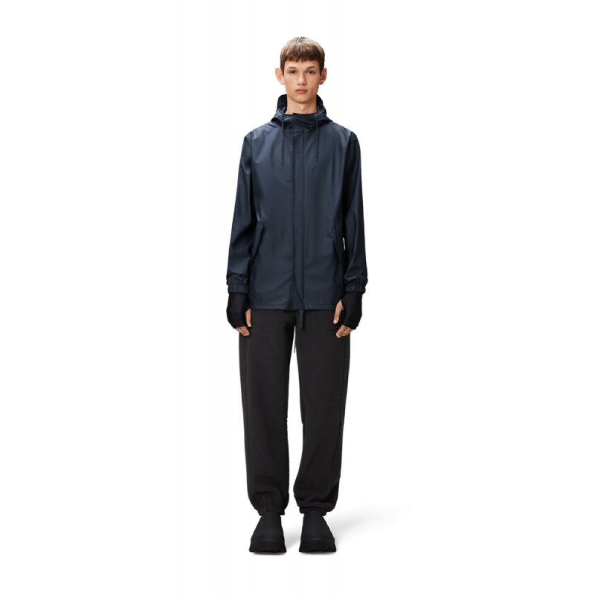 • This rain jacket is made from Rains signature PU fabric and has welded seams.