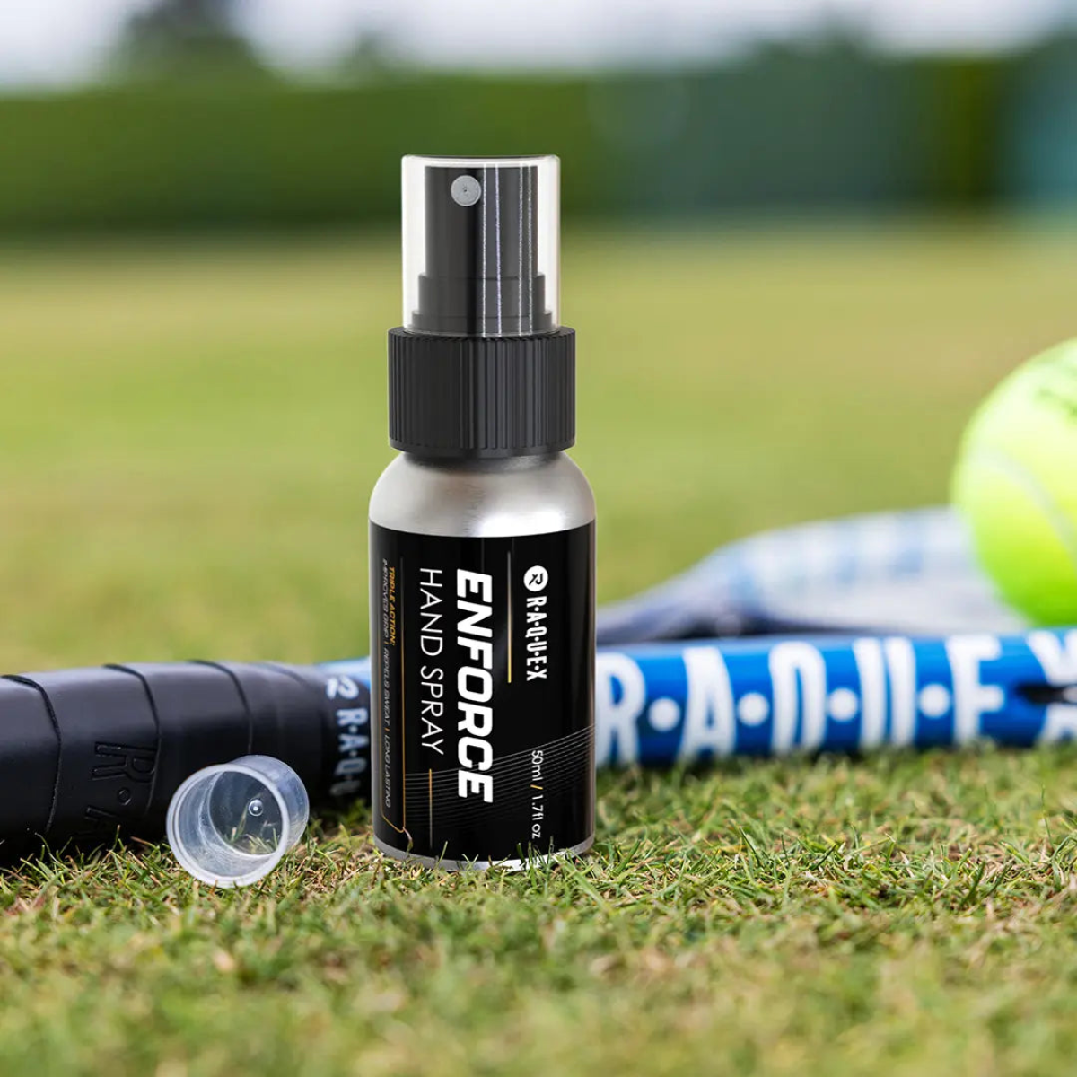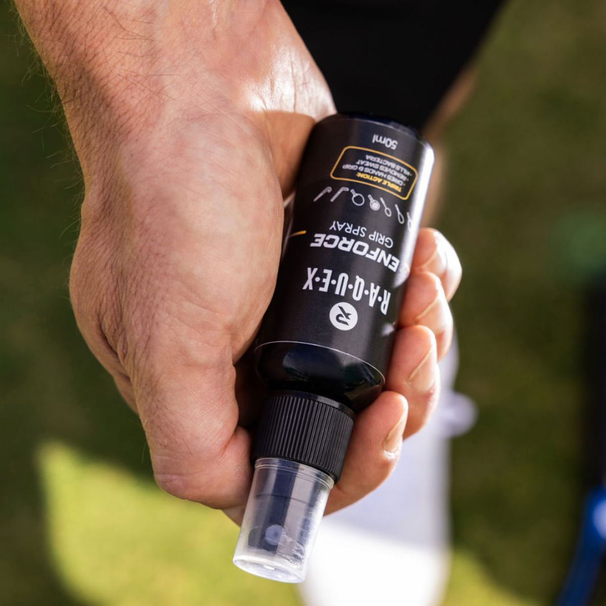 Triple action grip hand spray – Dries hands and grips, removes sweat, and kills bacteria