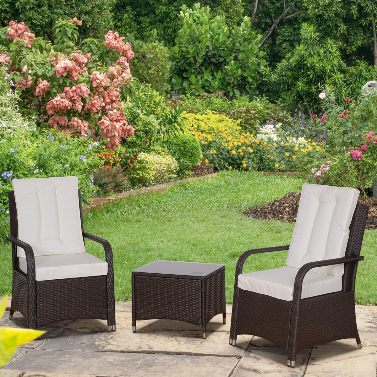 Rattan Garden Furniture 3 PCs Sofa Chair Table Bistro Set Wicker Weave
