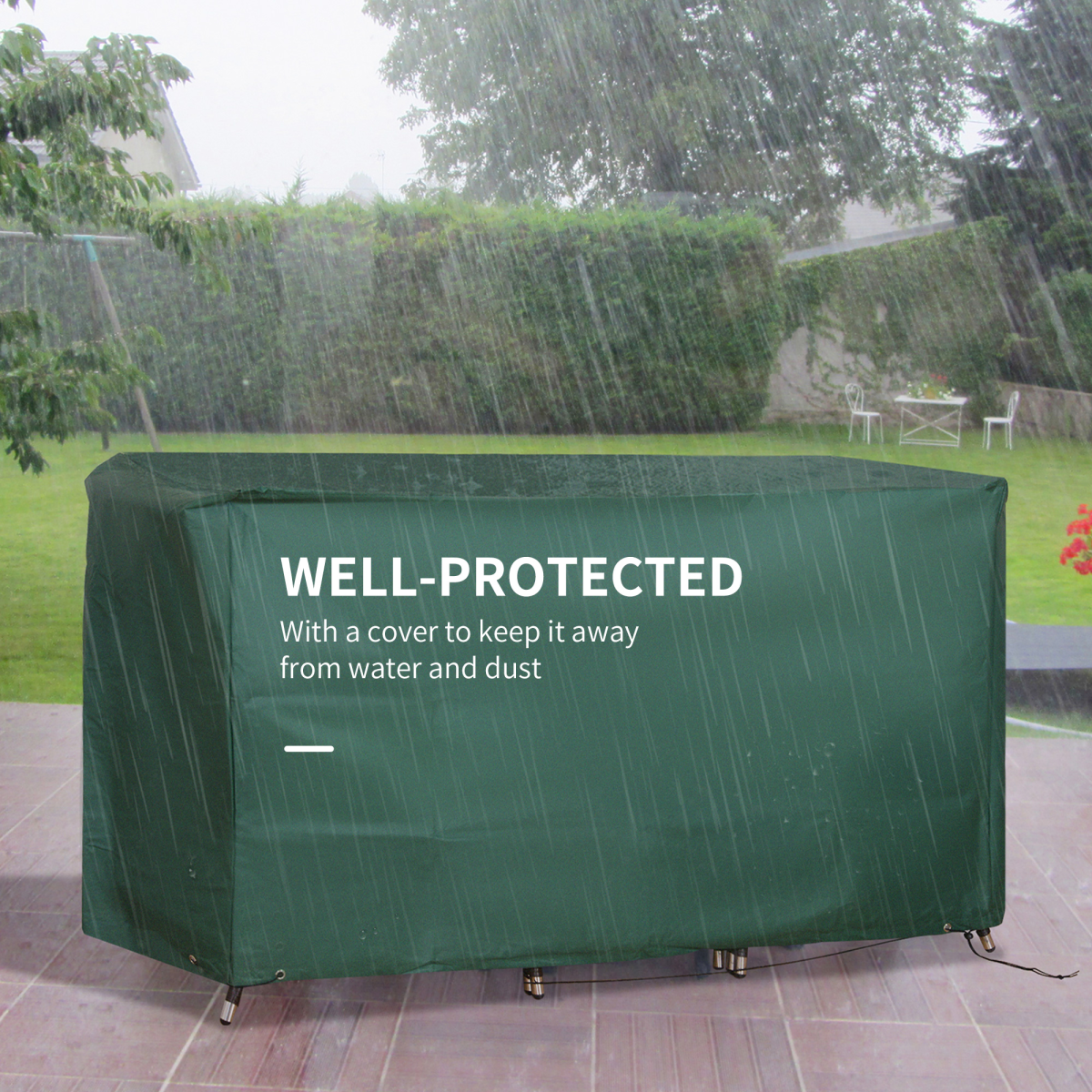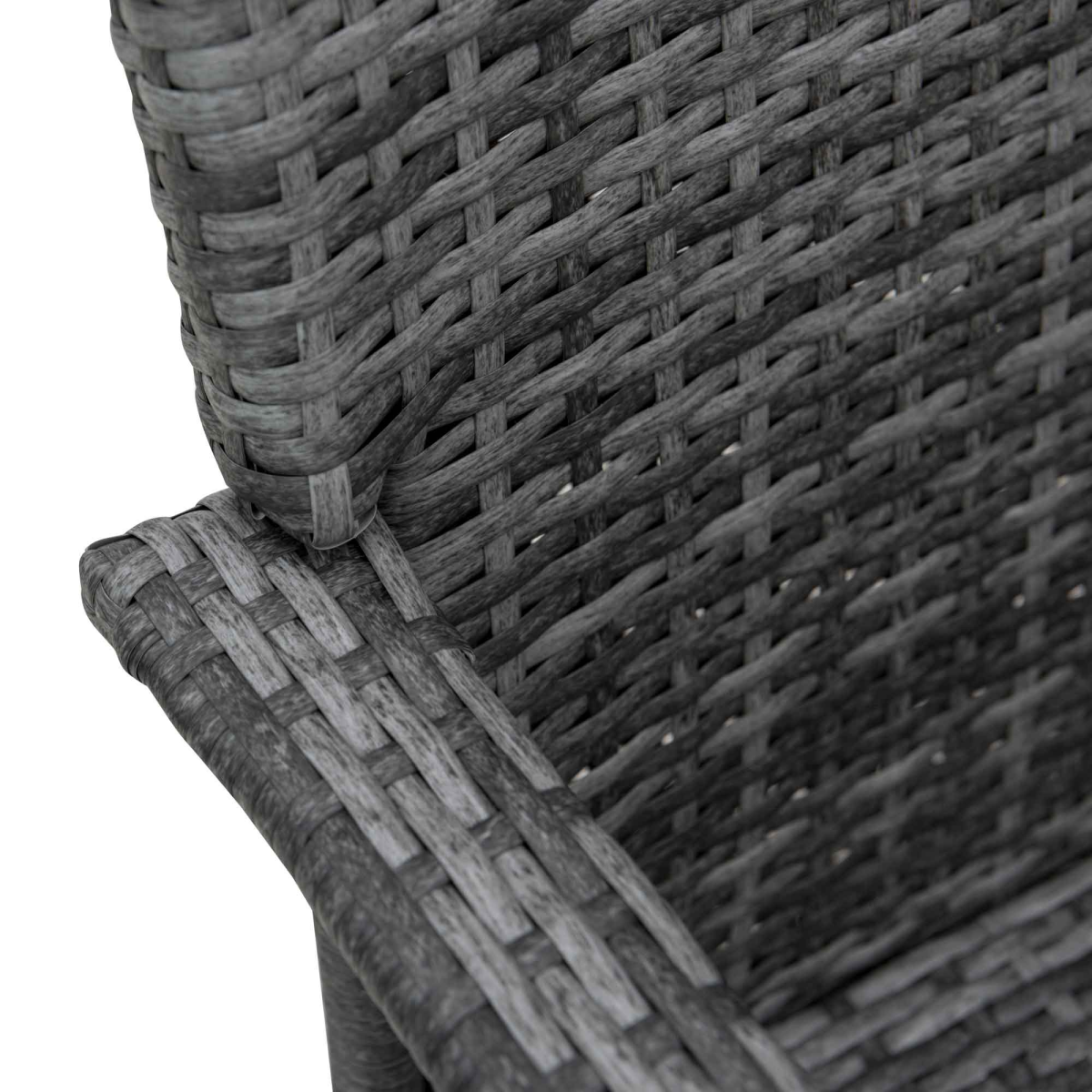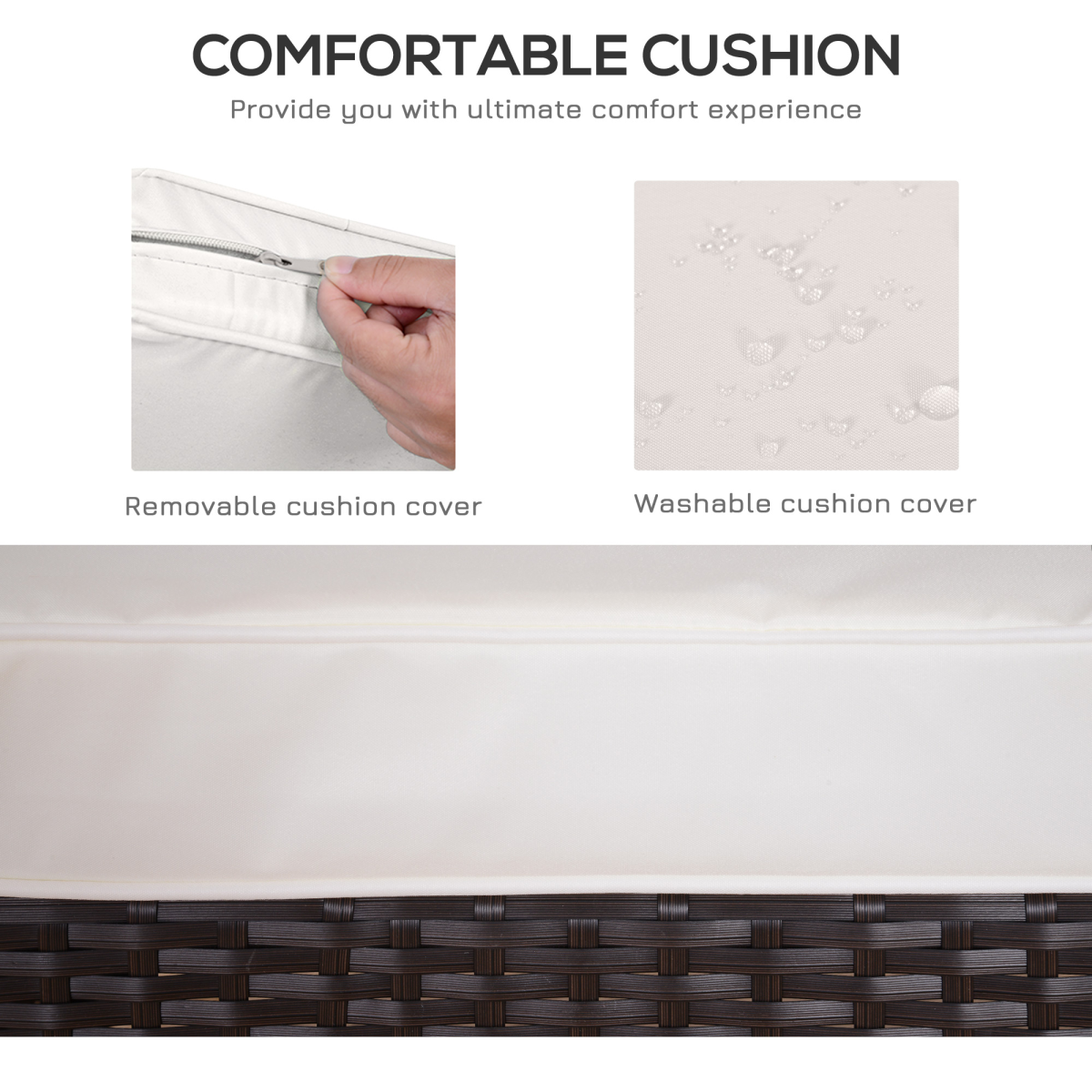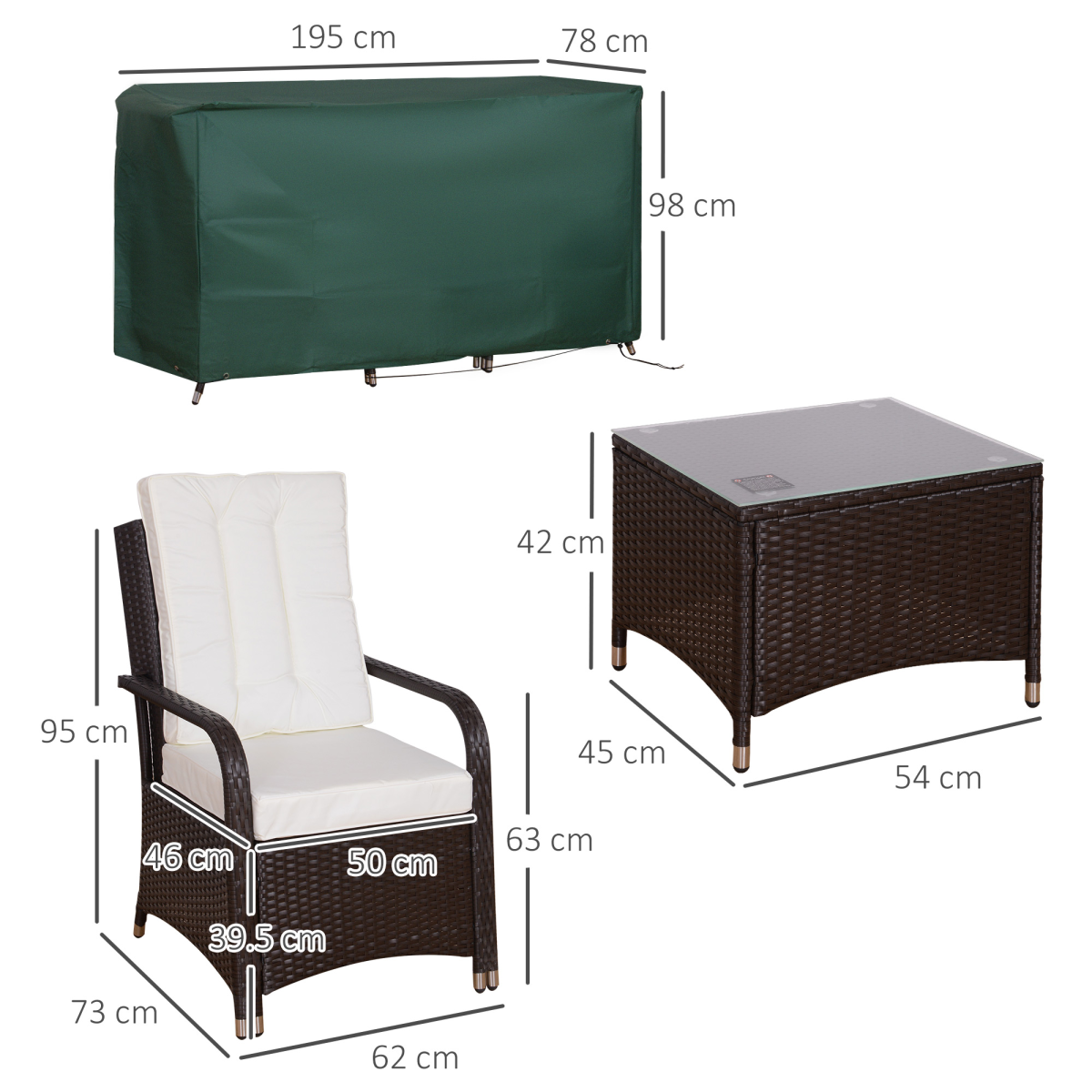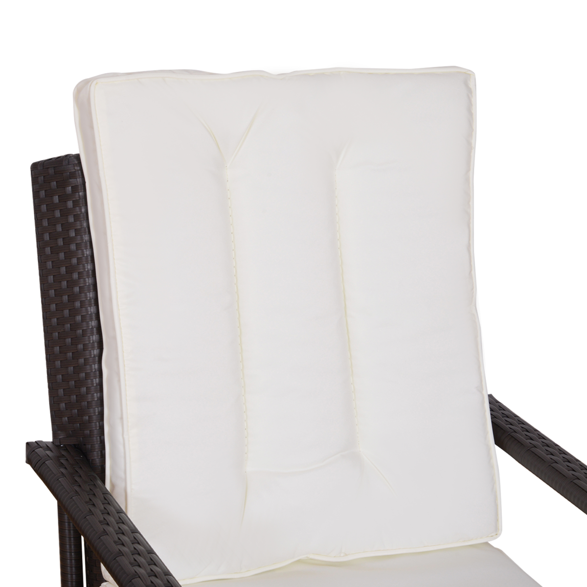 This outdoor bistro set made of PE Rattan is an ideal choice for your garden, patio or balcony. Combined with steel frame structure and covered with rattan, this set is the optimal set to have. Comes with two seats with cushions and a table with a glass top to place drinks and magazines. The stylish modern design can fit into any style of your home and garden.