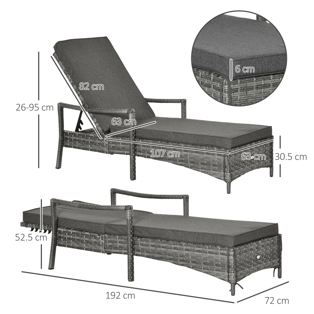 This outdoor rattan single lounge from Outsunny is stylish and can fit with any backyard decor. Constructed by all hand woven dual PE rattan wicker and metal frame for durability. 4-level adjustable backrest, which can match your body provide relaxing and sleeping modes. Soft padded cotton for optimal comfort and relaxation. Premium armrest add extra comfort. Ensuring you will feel relaxed while sunbathing with our outdoor furniture.