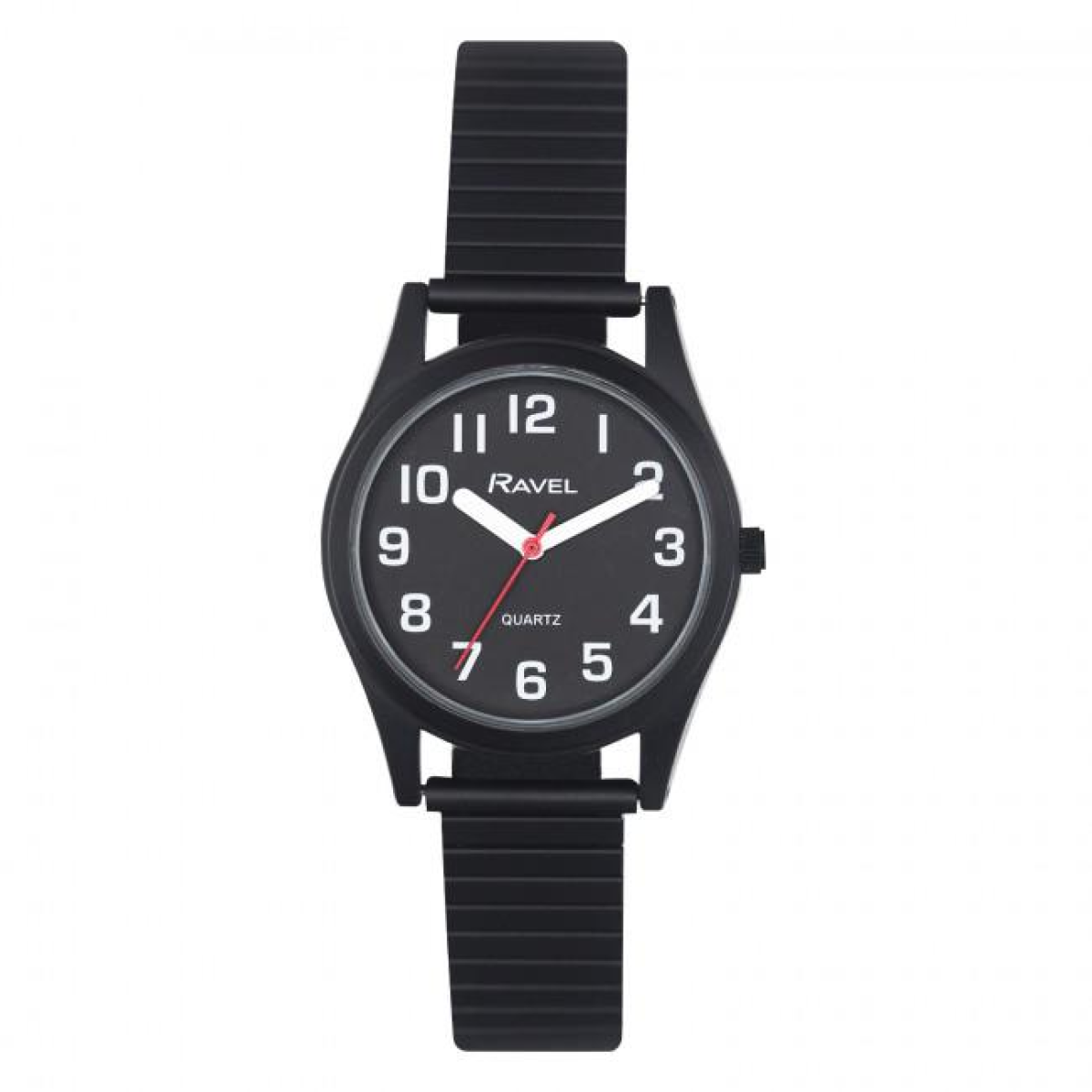 Ravel Ladies Basic Bold Easy Read Expander Bracelet Watch Black/Black R0225