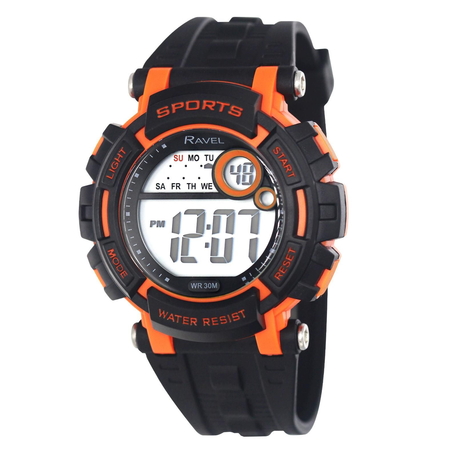 Ravel Mens 3ATM Digital Sports Black/Orange2 Watch RDG.14.19