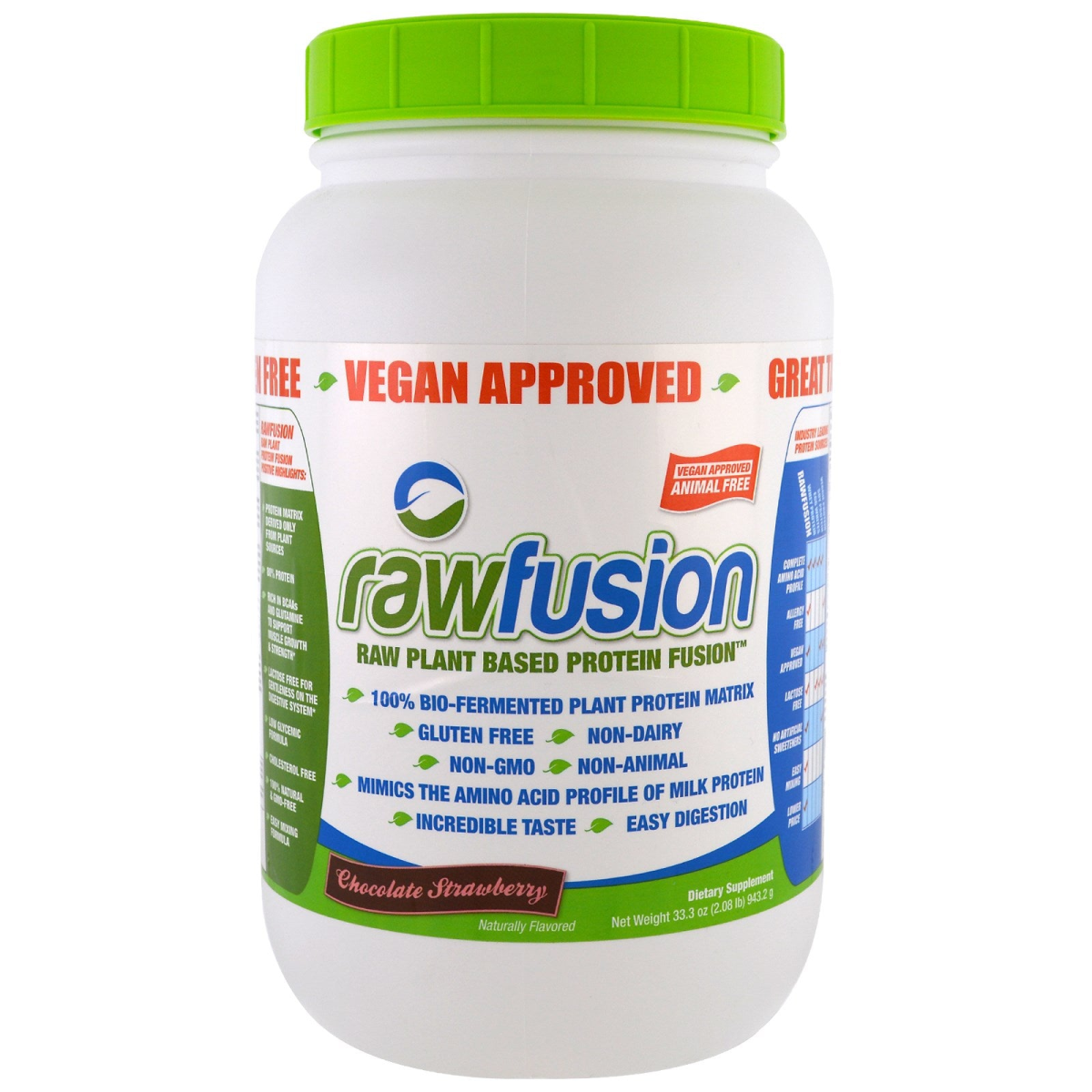 Gluten Free Great Tasting Vegan Approved Animal Free 100% Bio-Fermented Plant Protein Matrix Non-Dairy Non-GMO Non-Animal Mimics The Amino Acid Profile of Milk Protein Incredible Taste Easy Digestion Naturally Flavored Dietary Supplement GMP Manufactured - GMP Certified - FDA Licensed Facility HPLC & FTIR Tested Quality Approved Rawfusion is the world's first unmatched proprietary raw plant fusion matrix that sets a new industry standard for performance and taste. Rawfusion contains a creamy, positively charged protein matrix that only tastes incredibly awesome, but it's good for you. Rawfusion is the brainchild of over 1 year or intense research & experimentation in the field of protein cold-extrusion technologies. With Rawfusion you are getting 21 grams of an allergen, GMO & animal free custom bio-fermented plant protein fusion that is loaded with Pea Protein Isolate, Brown Rice Sprouted & Artichoke Protein Concentrate swirled in a delicious matrix. Rawfusion amino acid profile mimics that of whey/milk thus is rich in Glutamine and contains over 4,580 mg of BCAAs (Leucine, Isoleucine, Valine) per serving. Our patent pending formulation is free of solvents, radiation, artificial colors, artificial sweeteners or anything created synthetically. Further, each ingredient is extracted from raw ingredients that are GMO, herbicide and pesticide free. Rawfusion is a next generation vegan, Raw Plant Based Protein that is not only easily digestible, but also ultra-healthy and ideal for those who like to be health and fit, without compromising taste. No matter if you are looking to manage weight, increase vitality, trying to curb appetite or simply want to add quality macro-nutrients to your diet, here are just a few reasons why Rawfusion is for you: Dairy, Soy & Animal Free 100% Raw Vegan Matrix Incredible Taste & Texture Rawfusion Raw Plant Protein Fusion Positive Highlights: Protein Matrix Derived Only From Plant Sources 80% Protein Rich in BCAAs and Glutamine To Support Muscle Growth & Strength Lactose Free For Gentleness On The Digestive System Low Glycemic Formula Cholesterol Free 100% Natural & GMO-Free Easy Mixing Formula SAN products are manufactured under GMP (Good Manufacturing Practices) standards with stringent quality control guidelines. Additionally, each lot produced for SAN is independently tested for purity and potency by HPLC analysis to ensure only the highest quality ingredients in our innovative formulas.