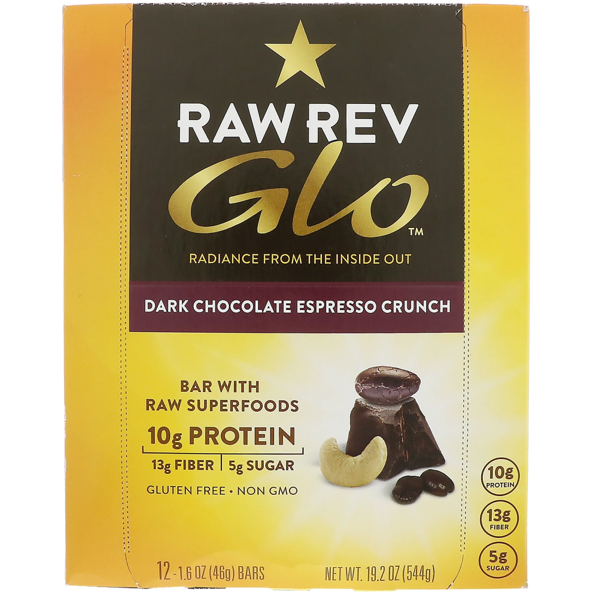 Raw Revolution, Glo, Dark Chocolate Espresso Crunch, 12 Bars, 1.6 oz (46 g) Each