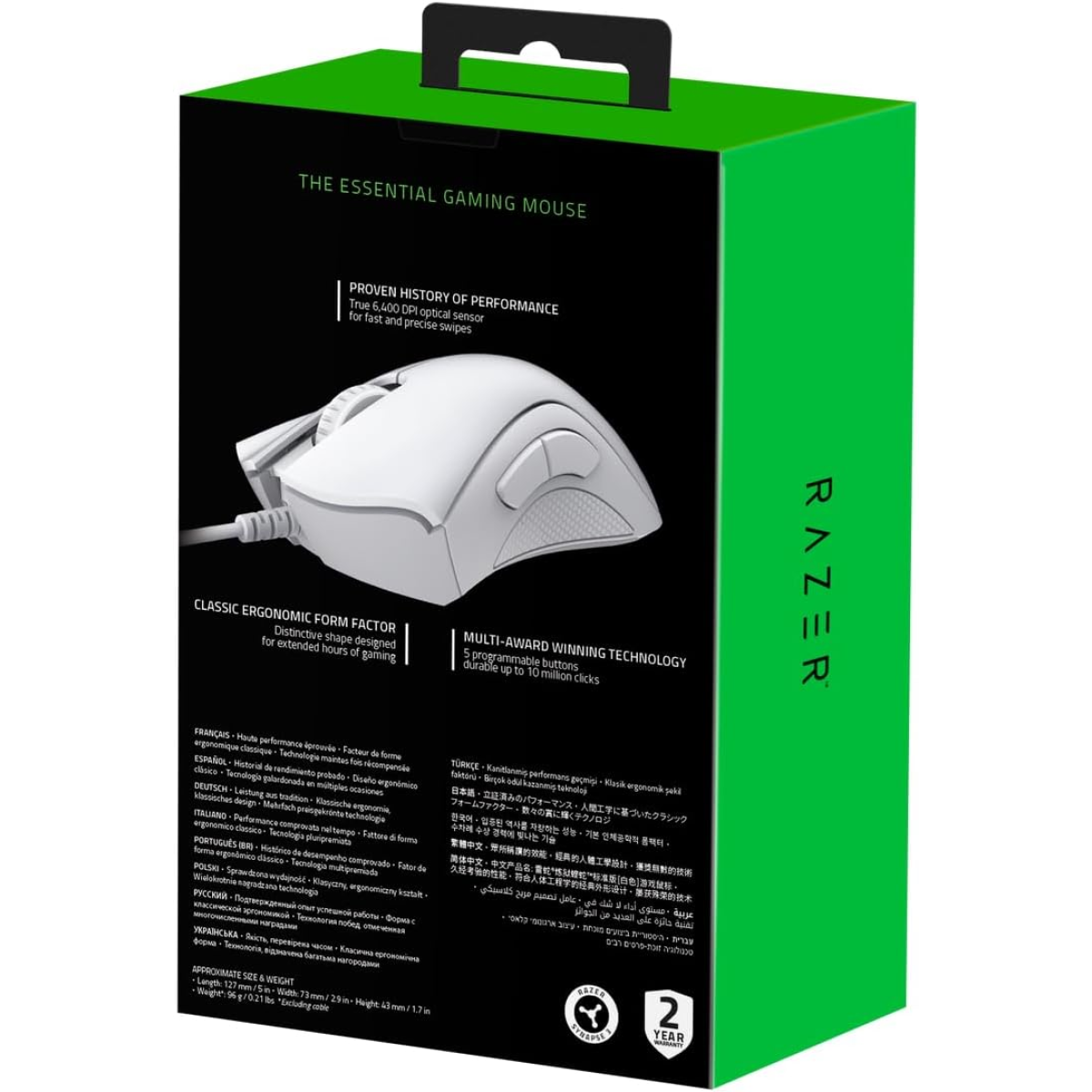 RazerDeathAdder Essential Gaming Mouse: 6400 DPI Optical Sensor - 5 Programmable Buttons - White