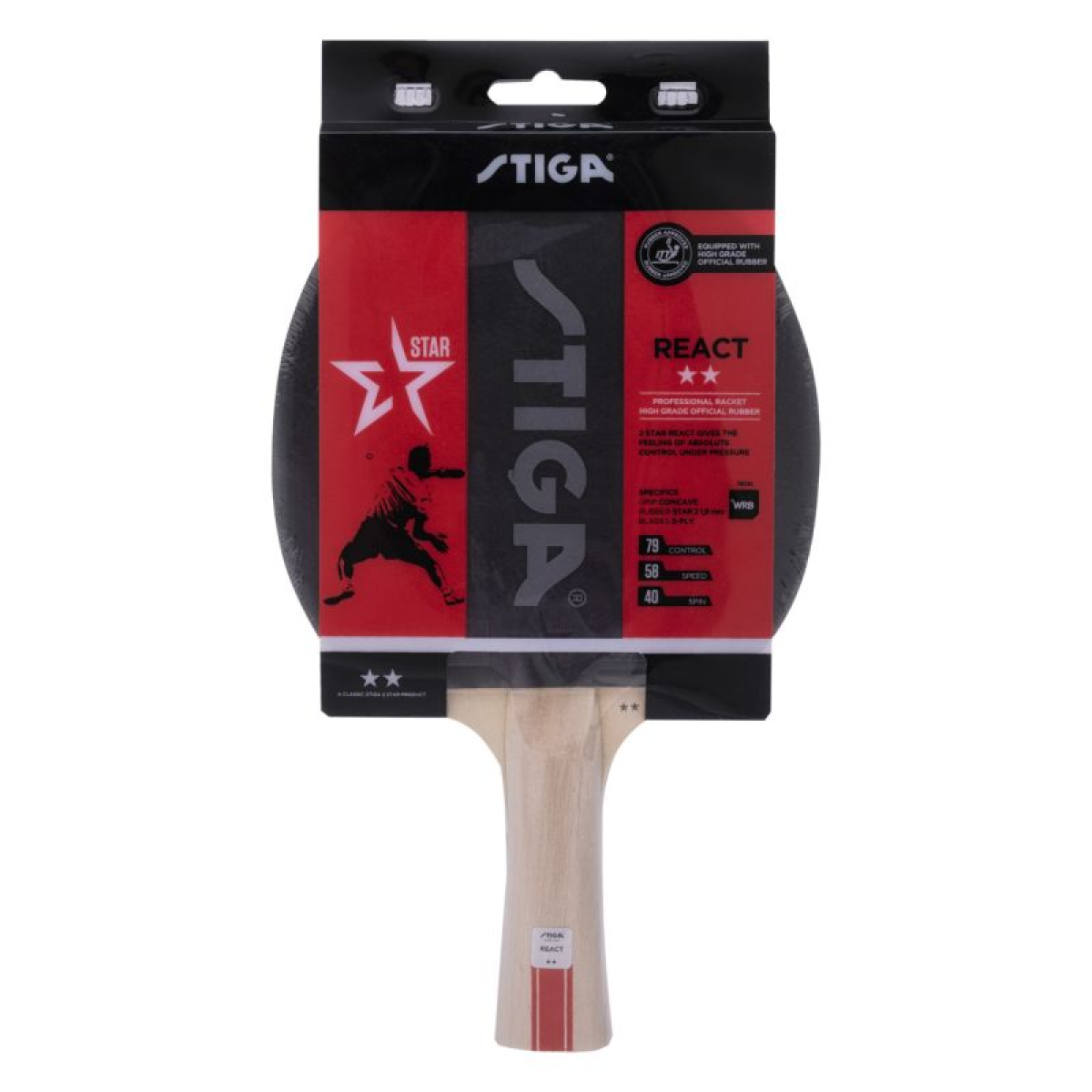 5 ply blade Concave grip 2 star ITTF approved rubber 1.9 mm thick rubber For players with a balanced playing style Control: 79 Speed: 58 Spin: 40
