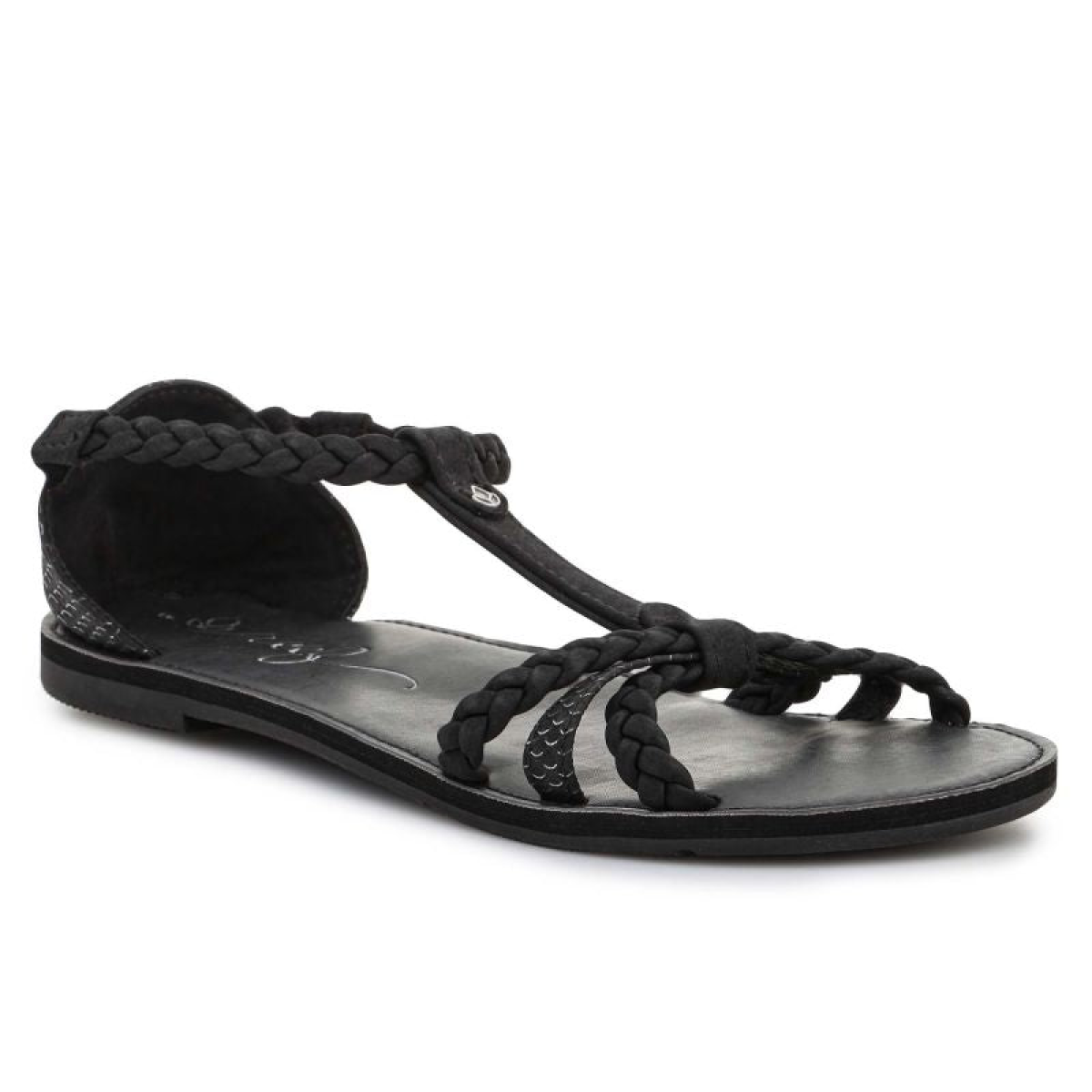 - Flat sandals with soft braided straps on the front and around the ankle made of synthetic material. Additionally, the ankle strap has elastic to make it easy to put on or take off the sandals