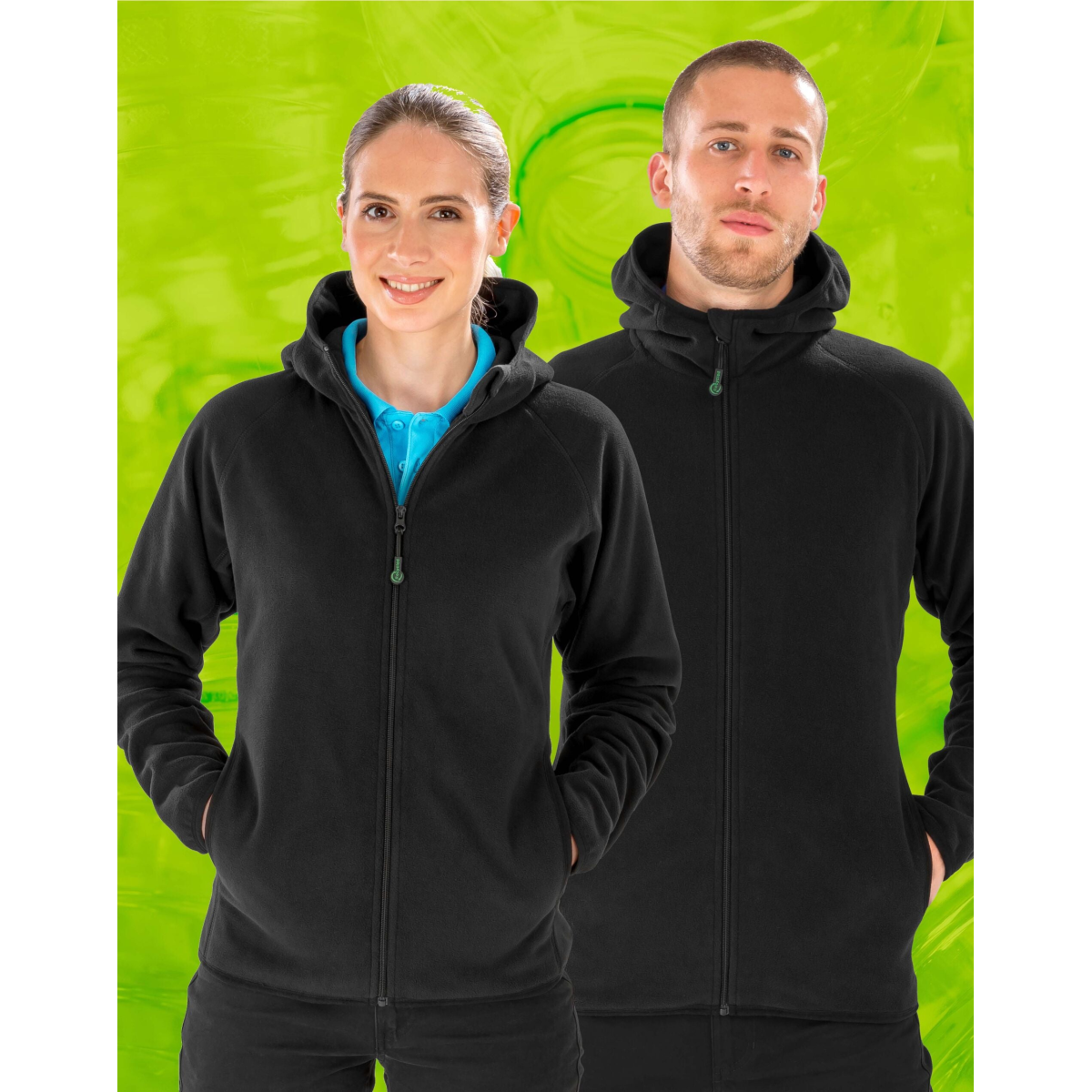 Result Recycled Unisex Microfleece Jacket | Lightweight Hooded Zip-Up Fleece | Black | XS-3XL