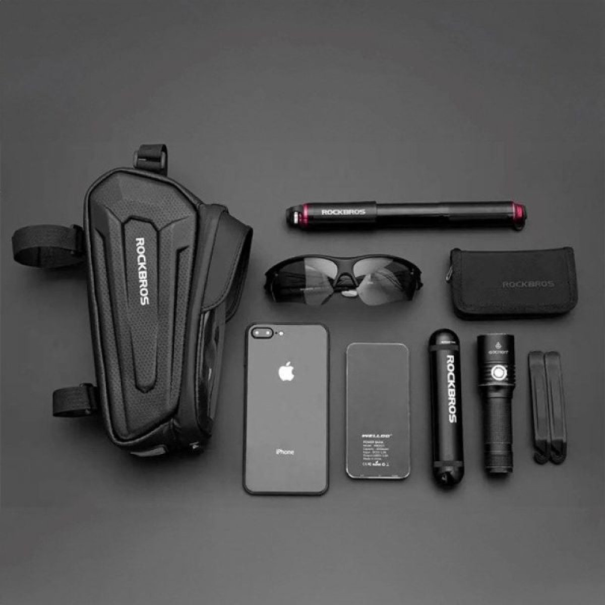 Rockbros B68 Bike Pannier for Frame, Armored, with Phone Pocket and Cover, 1.7L - Black