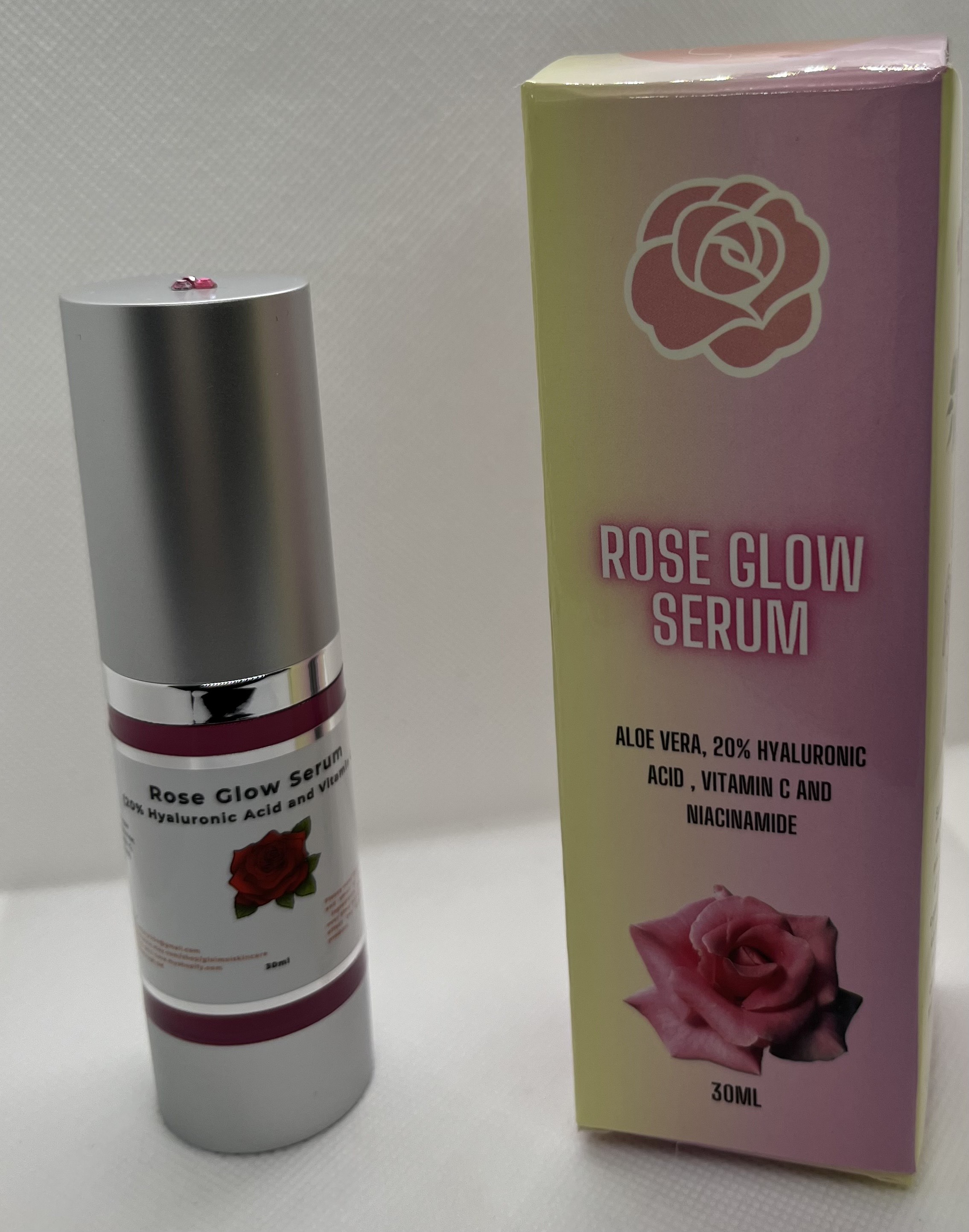 A 3 in 1, 20% hyaluronic acid serum ‘Rose Glow Serum’ for hydration with vitamin C and niacinamide for a brighter, more youthful complexion!