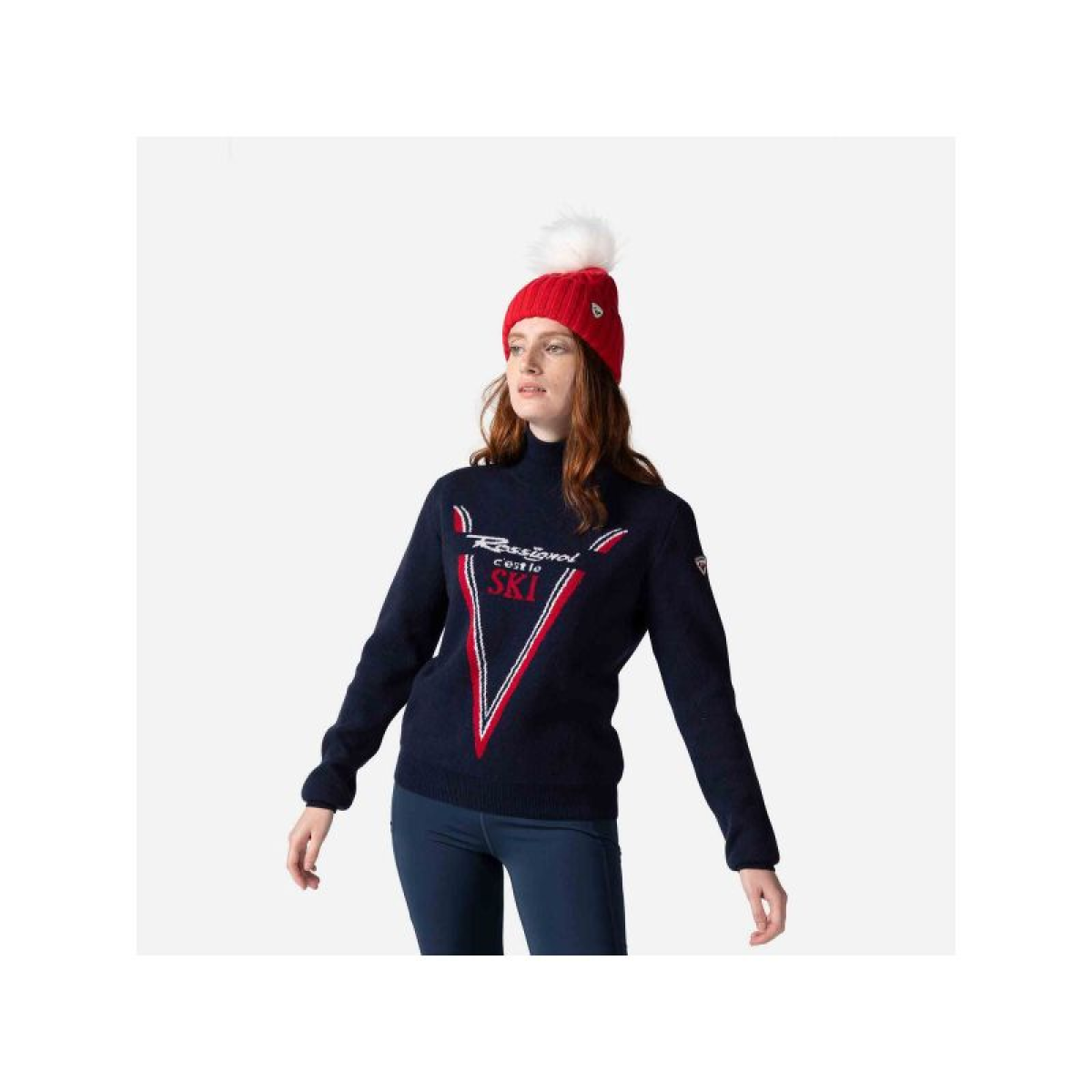 The women's Rossignol Victoire Turtleneck Knit Sweater will transport you to the magic of snowy slopes. The luxuriously soft merino and cashmere blend wraps you in warmth, while the turtleneck provides cozy shelter. Your passion for alpine adventures is clearly highlighted by the Rossignol logo on the chest.