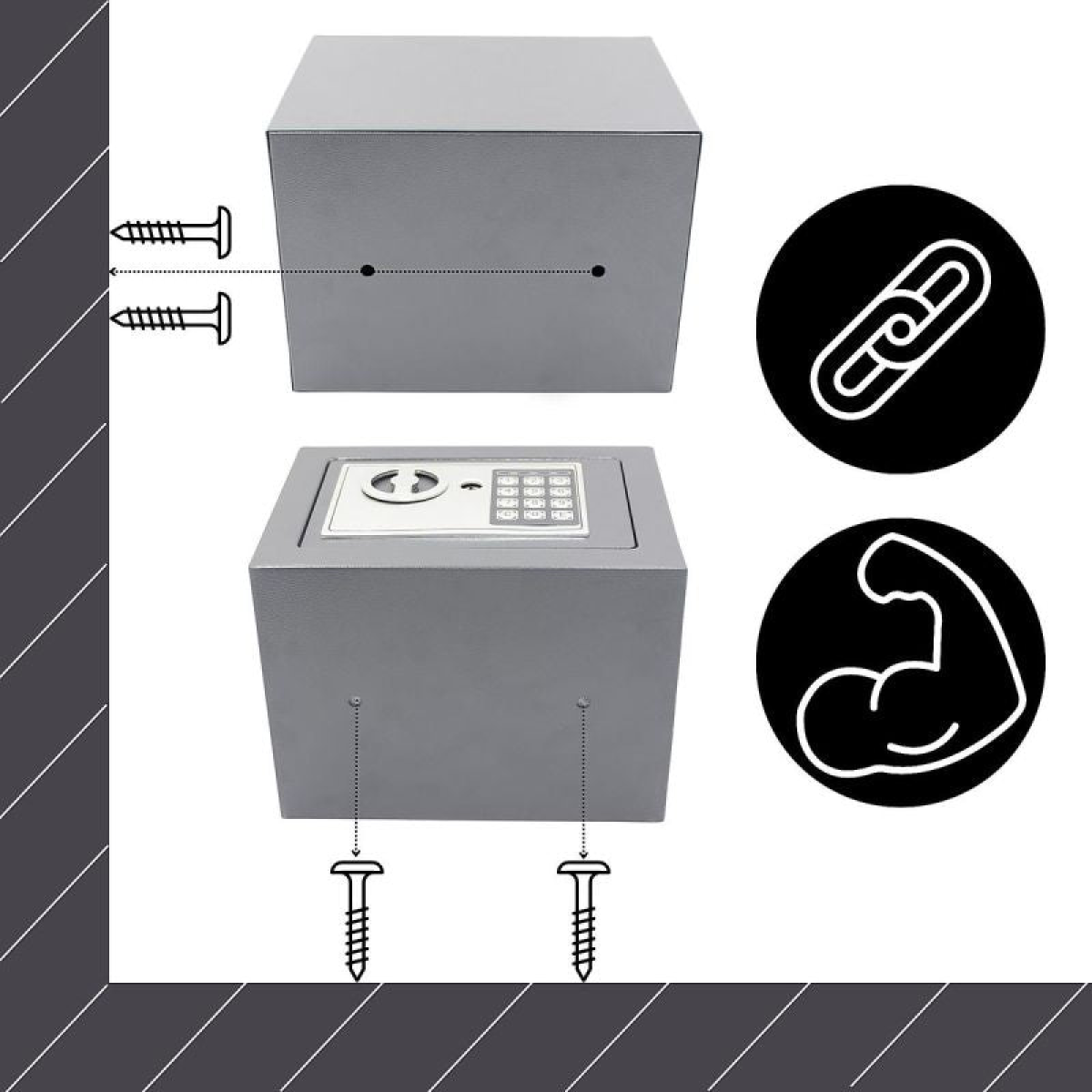 With its small dimensions of 23x17x17 cm, the safe easily fits in a closet, drawer, alcove, or shelf, providing added security. Its compact size allows for optimal space utilization while still providing ample storage for your most important items.