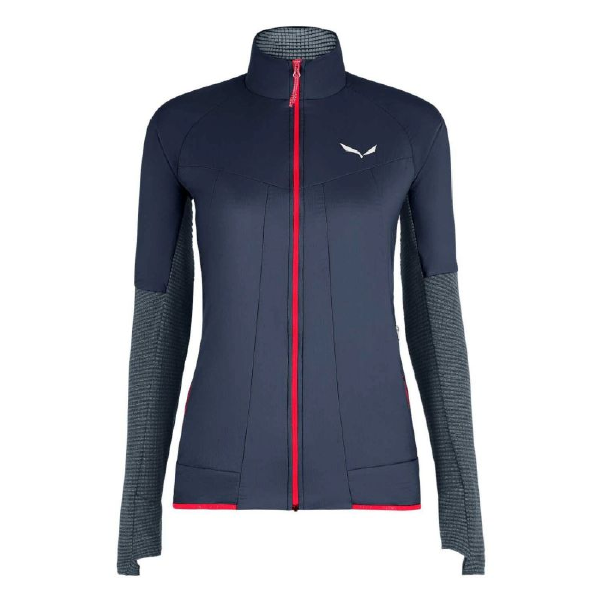Inspired by the towering peaks and wild cliffs of the fantastic Dolomites, the fairytale land of the Alps, where strange rock walls guard the rose garden of King Laurin. Soft, comfortable and lightly insulating, the Pedroc Hybrid 2 Polartec® Alpha® Women's Jacket is perfect for mountain hiking, coping well with extreme temperature changes and a variety of conditions. When you move, Polartec® Alpha® insulation breathes and wicks moisture away from the body. When you stop, it keeps you warm, while lightweight, windproof and water-resistant 20D ripstop fabric on the torso, arms and upper arms protects against wind and rain. Inside, an active Polartec® Alpha® Recycled membrane with a special fiber structure combined with a solid mesh lining that releases excess heat while providing thermoregulatory protection against the cold. The soft, snug sleeves are made from comfortable Polarlite fleece in a grid construction that provides breathability and warmth with minimal bulk. Ideal for fast hikes, they easily pull up when the weather heats up, and the discreet thumbholes provide extra coverage in cooler conditions. The same material is used for the center back panel, which provides maximum ventilation when wearing a pack. This comfortable women's jacket has a form-fitting, women's-specific, athletic cut that provides warmth when you need it. The jacket offers excellent freedom of movement and stretches comfortably to trap and retain heat. The soft inner collar feels nice against the neck. The jacket has two pockets (one of which doubles as a compression sack), contrasting zippers and reflective details. The durable Polygiene® finish provides odor control and longer freshness - without interfering with natural sweat production. Once you put it on, you'll probably never want to take it off. The Pedroc Hybrid 2 is an adaptive insulating jacket for speed hiking and mountain training.