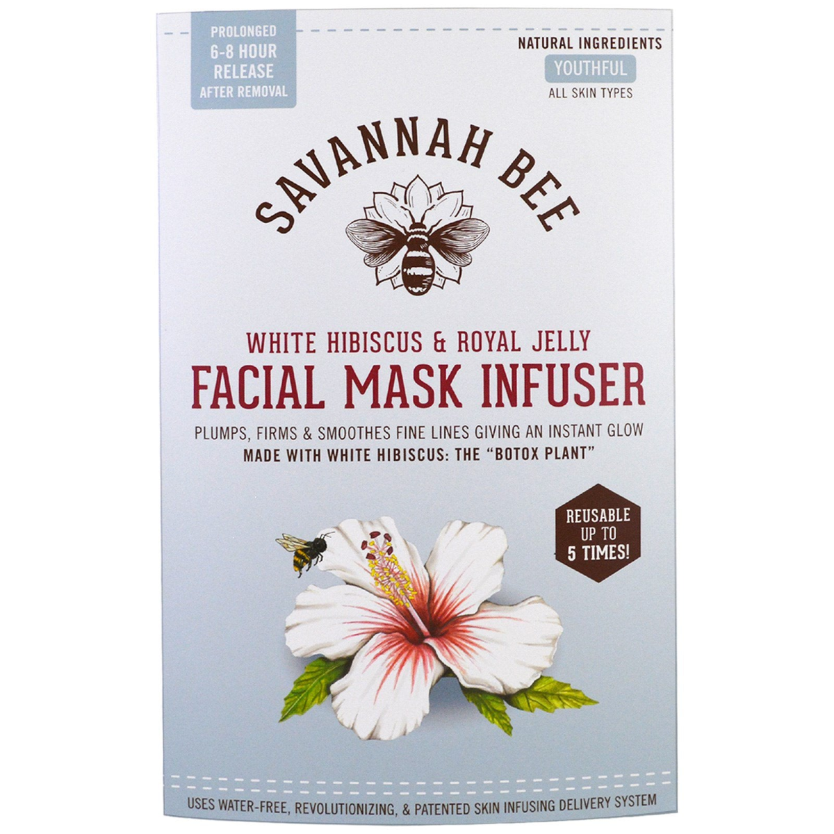Prolonged 6-8 Hour Release After Removal Natural Ingredients Youthful All Skin Types Plumps, Firms & Smoothes Fine Lines Giving An Instant Glow Made with White Hibiscus: The "Botox Plant" Reusable Up To 5 Times! Uses Water-Free, Revolutionizing, & Patented Skin Infusing Delivery System Innovative Ingredient Delivery System Youthful formula, in a uniquely imprinted pattern, transfuses nutrients and actives deep within the skin's top layer where aging sings occur. Targeted delivery system offers a prolonged 6 to 8 hour release after removal of mask, continuously powering fundamental active ingredients to skin cells. Provides anti-wrinkle, plumping, and firming action for all skin types. Innovative technology, combined with natural power ingredients Free of Chemical Dyes and Treatments Water-Free, No-Mess Application Complements Your Beauty Routine At Home or On The Go! Powerful Natural Benefits For Your Skin Royal Jelly: Powerhouse of protein, vitamins, and amino acids that contribute to collagen production and help skin texture & tone Honey: Superior antibacterial properties plus ultra-hydrating to give complexion a boost and provide natural skin glow White Hibiscus: Known as the "Botox Plant", increases skin elasticity and is a gentle, natural and non-toxic solution to plump skin Baobab Fruit: Packed with rich antioxidants and vitamin C, helping body to form collagen and elastin "The most precious product of the hive, Royal Jelly is "Cinderella" substance that turns a worker bee into a queen, prolonging her lifer as much as 40 times. -Ted Dennard, Owner & Beekeeper Deeply penetrates, restores, and rejuvenates the skin by infusing nutrients along with White Hibiscus, Baobab, Honey, Royal Jelly, and other natural active ingredients. Uses revolutionizing and patented water-free delivery system, leaving skin hydrated, radiant, and flower-petal soft. All Natural Power Ingredients With Hibiscus Flower, also called the "Botox Plant", is known for its ability to firm and lift skin Pulp of baobab fruit is rich in antioxidants an natural fights signs of ageing Nutrient-rich honey, royal jelly, and natural extract moisturize and smooth skin "A blossom much enjoyed by honeybees, White Hibiscus is the symbol of Beauty & Seduction". -Ted Dennard Owner & Beekeeper