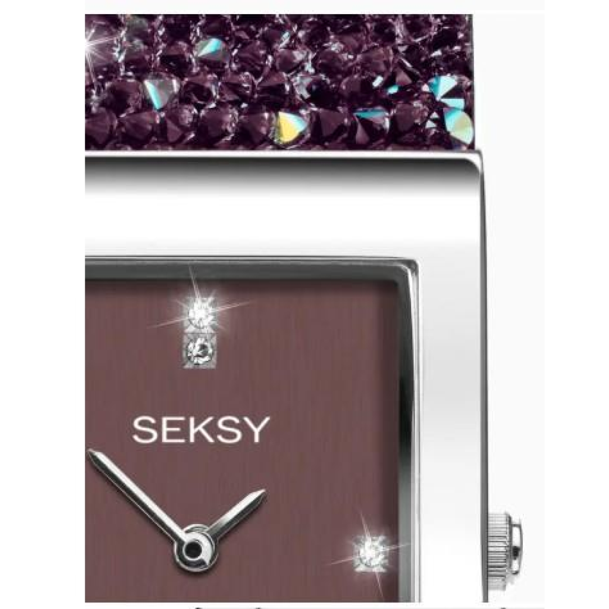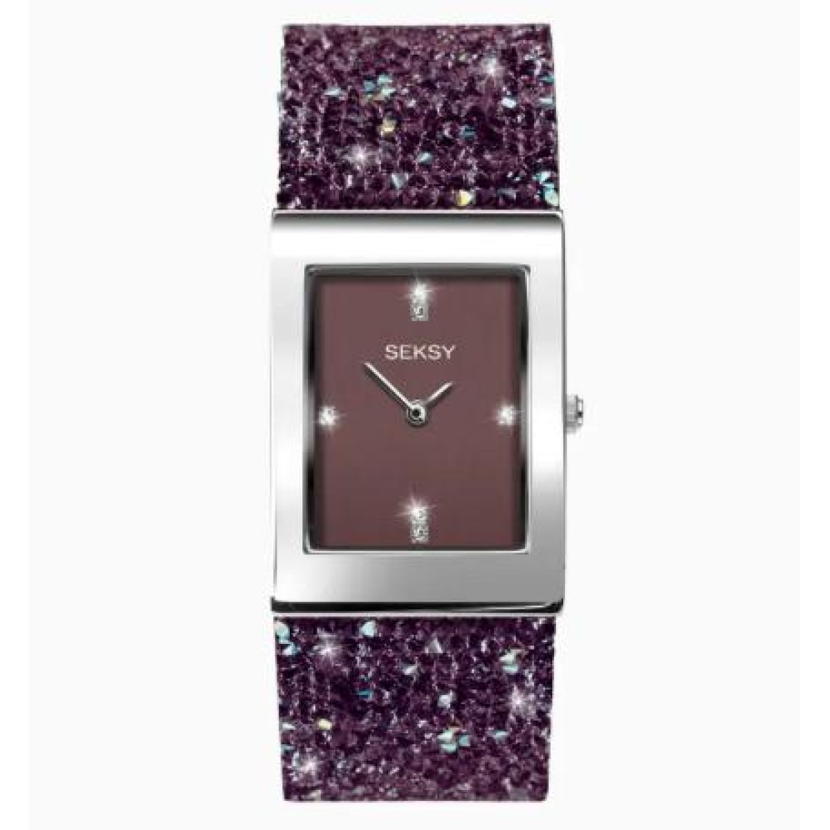Sekonda Seksy Ladies Bling Rectangular Purple Dial & Purple stone Stainless Steel Bracelet Strap Watch