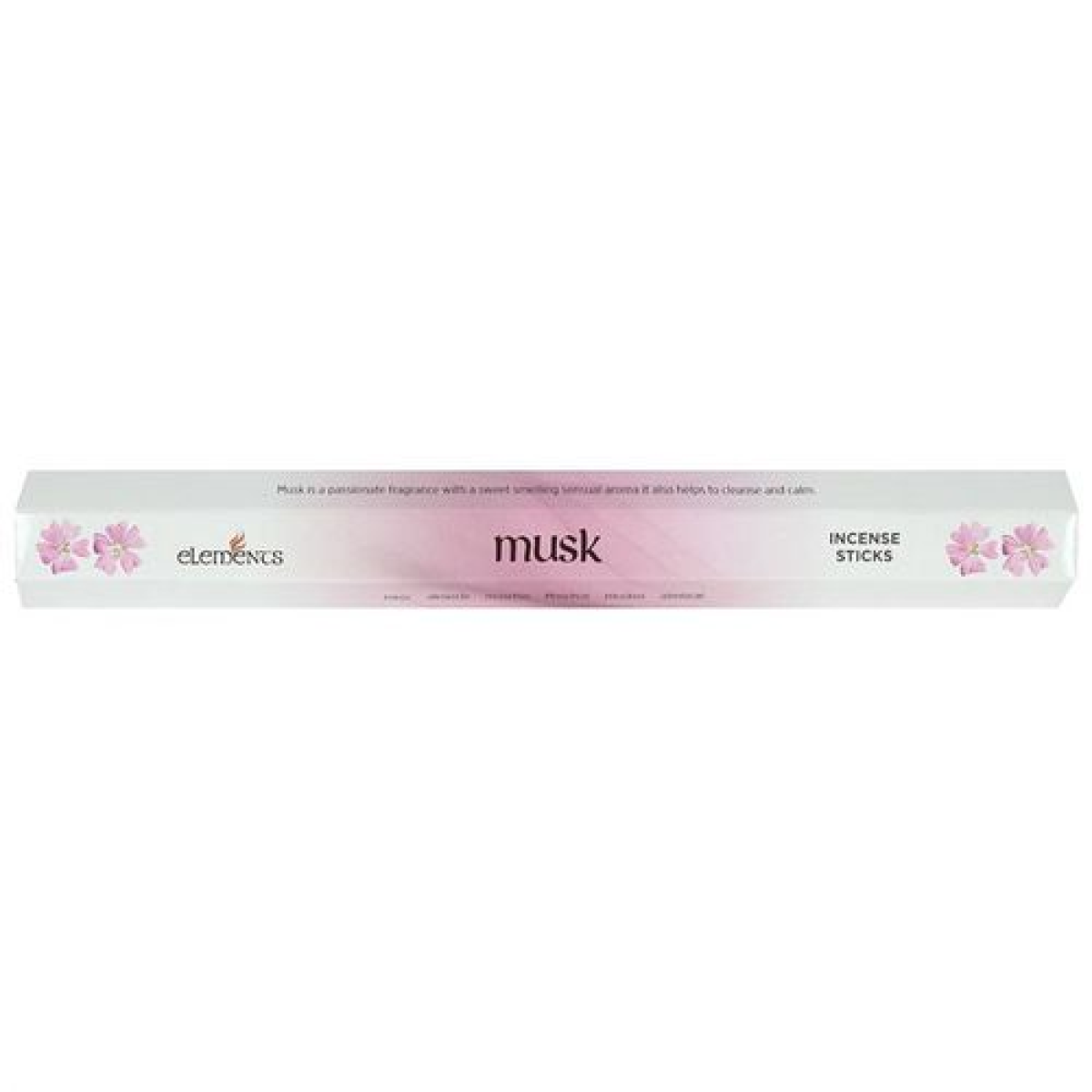 A box of 6 packs of Musk fragranced incense sticks by Elements. Each pack contains 20 incense sticks. Product Dimensions: H2.5cm x W24cm x D3cm Packaged Dimensions: H5.5cm x W25cm x D9cm