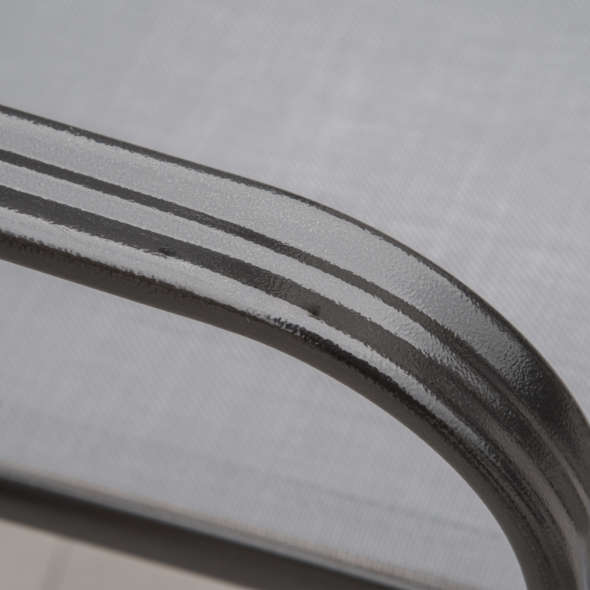 are space-saving and easy to store.COMFORTABLE: The mesh fabric of the stackable chairs helps reduce muscle tension and stress. High back provides comfort while enjoying the day.SOLID: These garden dining chairs have a metal frame with powder-coated surface. Four legs for balance.DIMENSIONS: 54L x 75.5W x 95Hcm. Seat: 44.5W x 45D x 41Hcm. Assembly required.