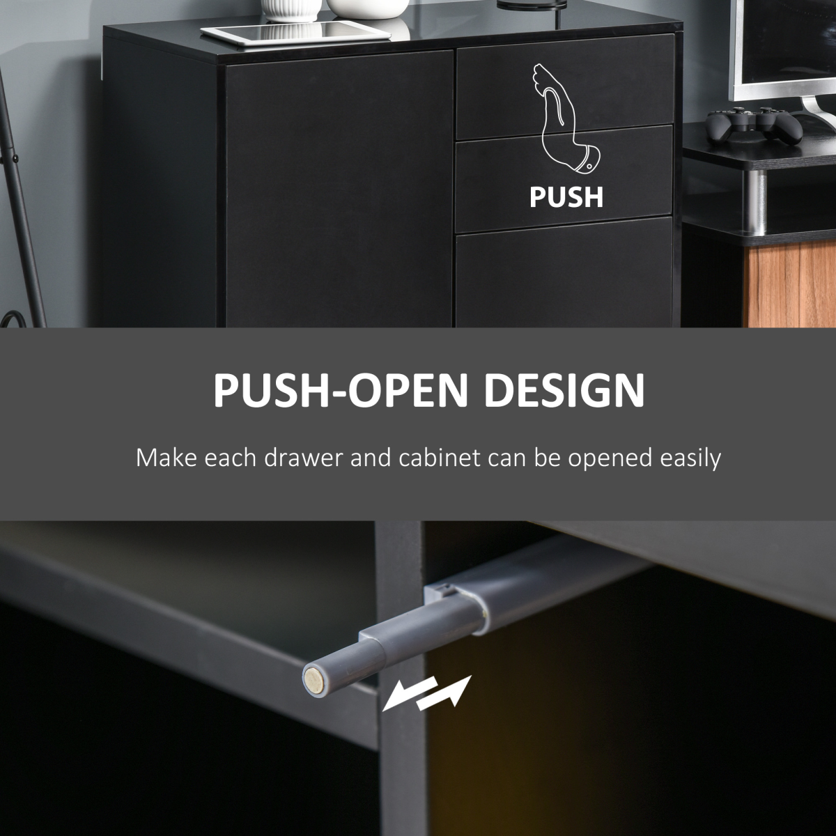GLOSSY AND MATTE COMBO: Do you still have a hard time deciding between a glossy and a matte cabinet? The cabinet combines the two for a sophisticated look that is effortless. In contrast to the matte finish on the front panels, the glossy finish on the top and side highlights the cabinet's outlines, enhancing the feel of light and spaceMULTIPLE STORAGE COMPARTMENTS: Features two drawers and two cabinets, giving you plenty of room for keeping plates, boxes and more discreetly stored. Small cabinet features an three-level adjustable shelf.PUSH OPEN: Simply one click, and your drawers and cabinet doors open themselves. Saves time and effort.ANTI-TIPPING DESIGN: This freestanding furniture features an anti-tipping strap and can be fixed to the wall to prevent it from tipping over. DIMENSIONS: 74H x 79W x 36Dcm.MAXIMUM LOAD 50KG. ASSEMBLY REQUIRED.