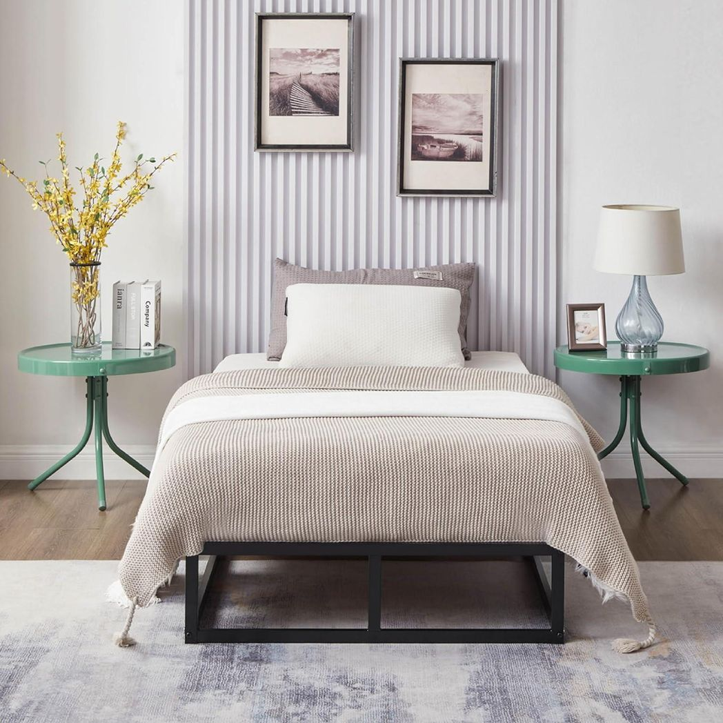 This metal platform bed is not only very strong but stylish. The metal slats have been designed for evenly distributed support. The frame of the bed is very sturdy in its construction as the bar along the floor ensures a solid finish. Finished with a black powder coating this bed would suit any bedroom décor. These beds feature mattress brackets to keep the mattress securely in position on top of the platform. These beds are supplied flat packed with easy to follow instructions, allowing them to be built quickly and effortlessly. All components for building your bed frame are included in the box Single: 190cm L x 92cm W x 25cm H