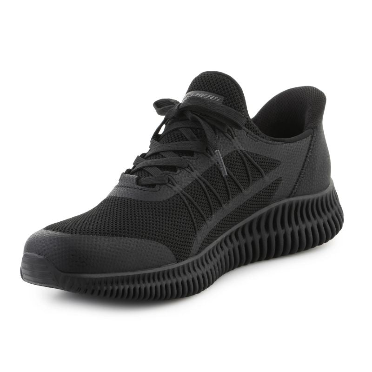 The Skechers BOBS Geo Lite Fixed Edge 118419-BBK Black men's sneakers are perfect for everyday casual wear. Designed with comfort in mind, Skechers Hands-Free Slip-Ins® technology allows for quick, hands-free slip-ons, for added convenience.