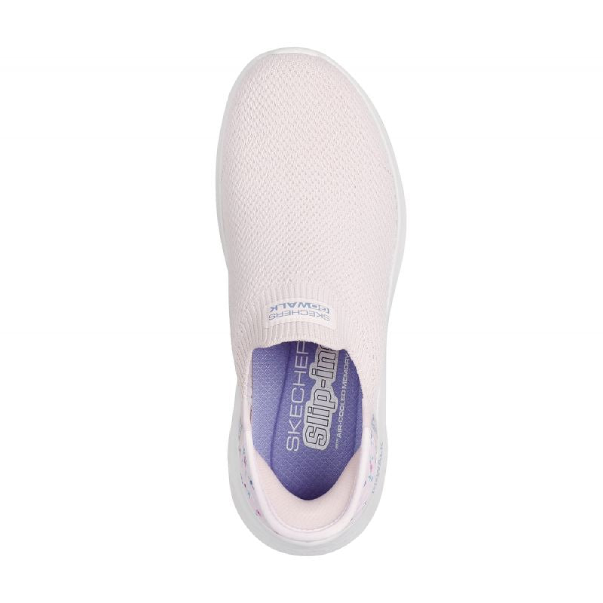 These vegan slip-on shoes feature a knitted mesh upper, a floral print heel counter, our exclusive Skechers Slip-ins® molded Heel Pillow™, a Skechers Air-Cooled Memory Foam® footbed, lightweight ULTRA GO® cushioning, and Flex Pillars™ technology for added freedom of movement.
