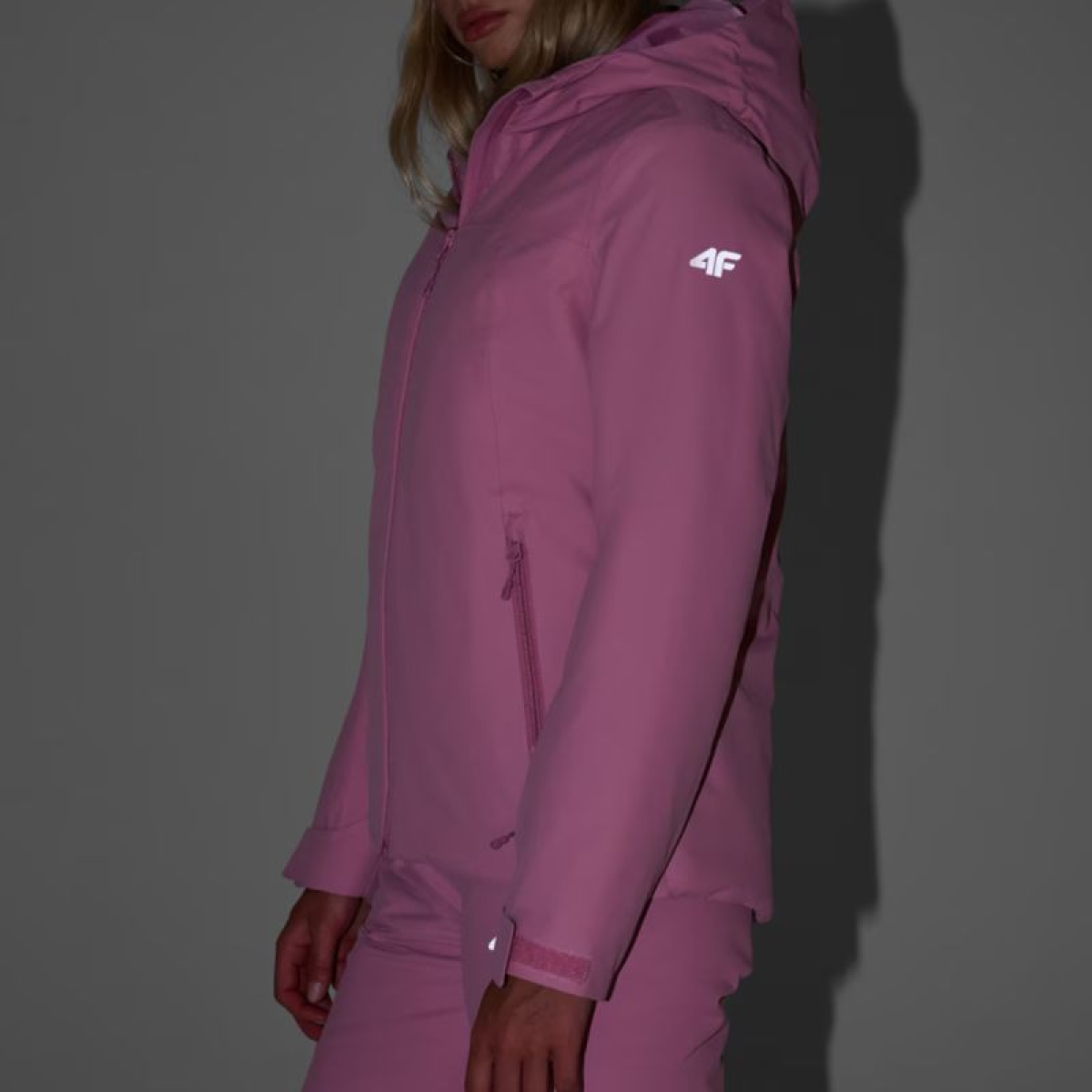 The 4F women's ski jacket is a model technologically prepared for low-intensity winter activities and everyday use.