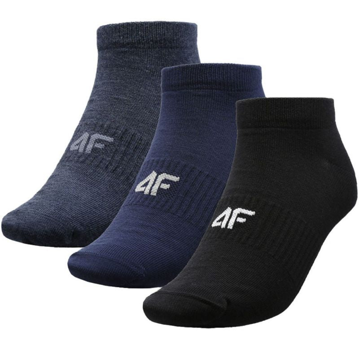 Men's 4F socks are perfect for everyday wear. Knitted fabric with cotton and synthetic fibers. Elasticated midfoot. A snug fit around the ankle. A non-compressive elastic top. Set of 3 pairs.