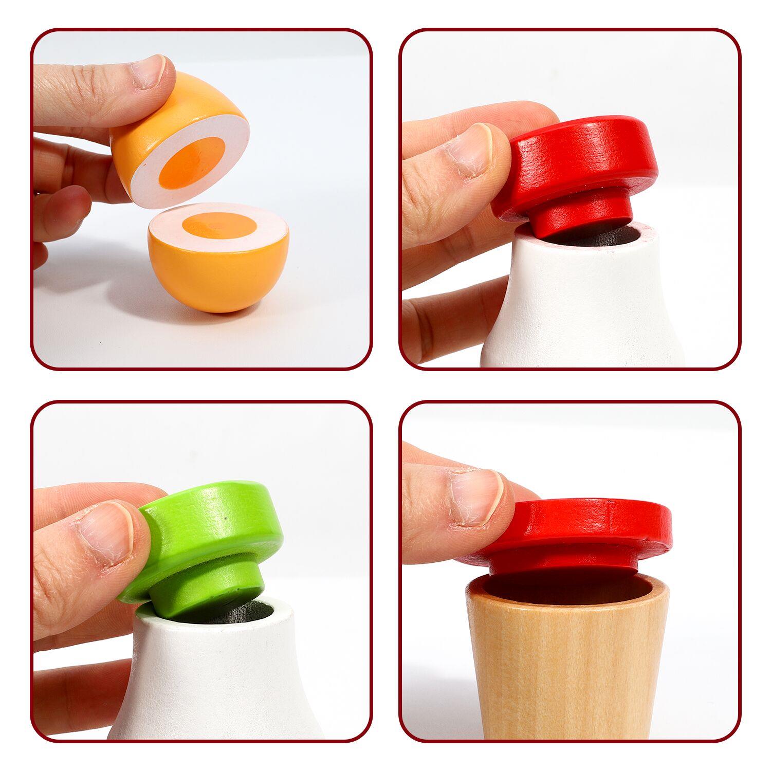 EDUCATIONAL DEVELOPMENT TOY: This pretend food playset is sure to spark children's imaginations. Allow children to think for themselves when playing, encourage them to imitate, enhance their imitation and practical abilities, grow their communication skills when playing with family or other children, and boost their intellectual development. Solid wooden pieces are perfectly sized for toddlers' little hands and help promote fine motor skills and dexterity.
