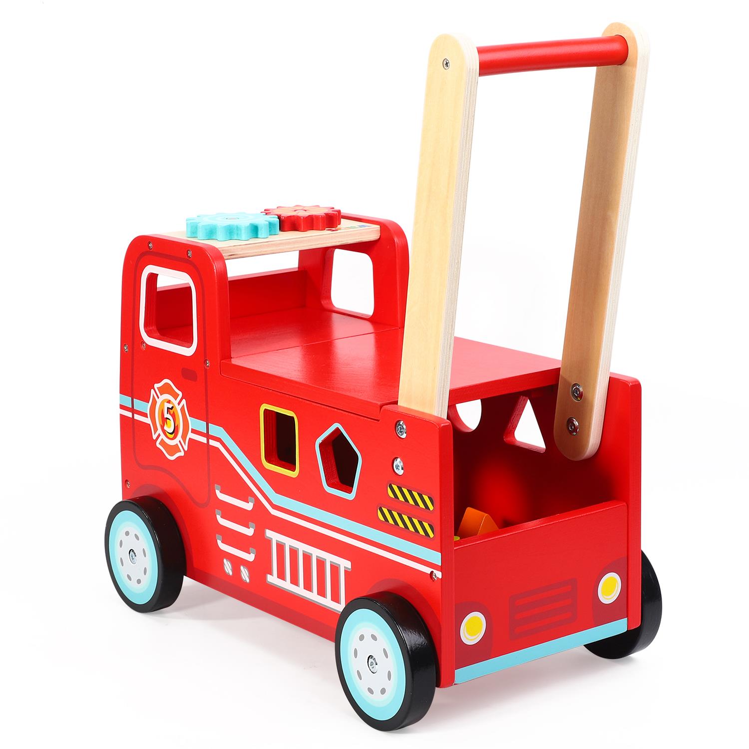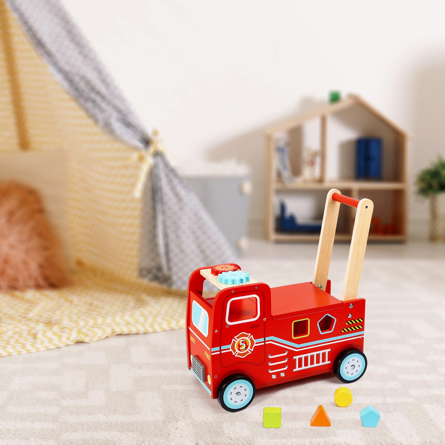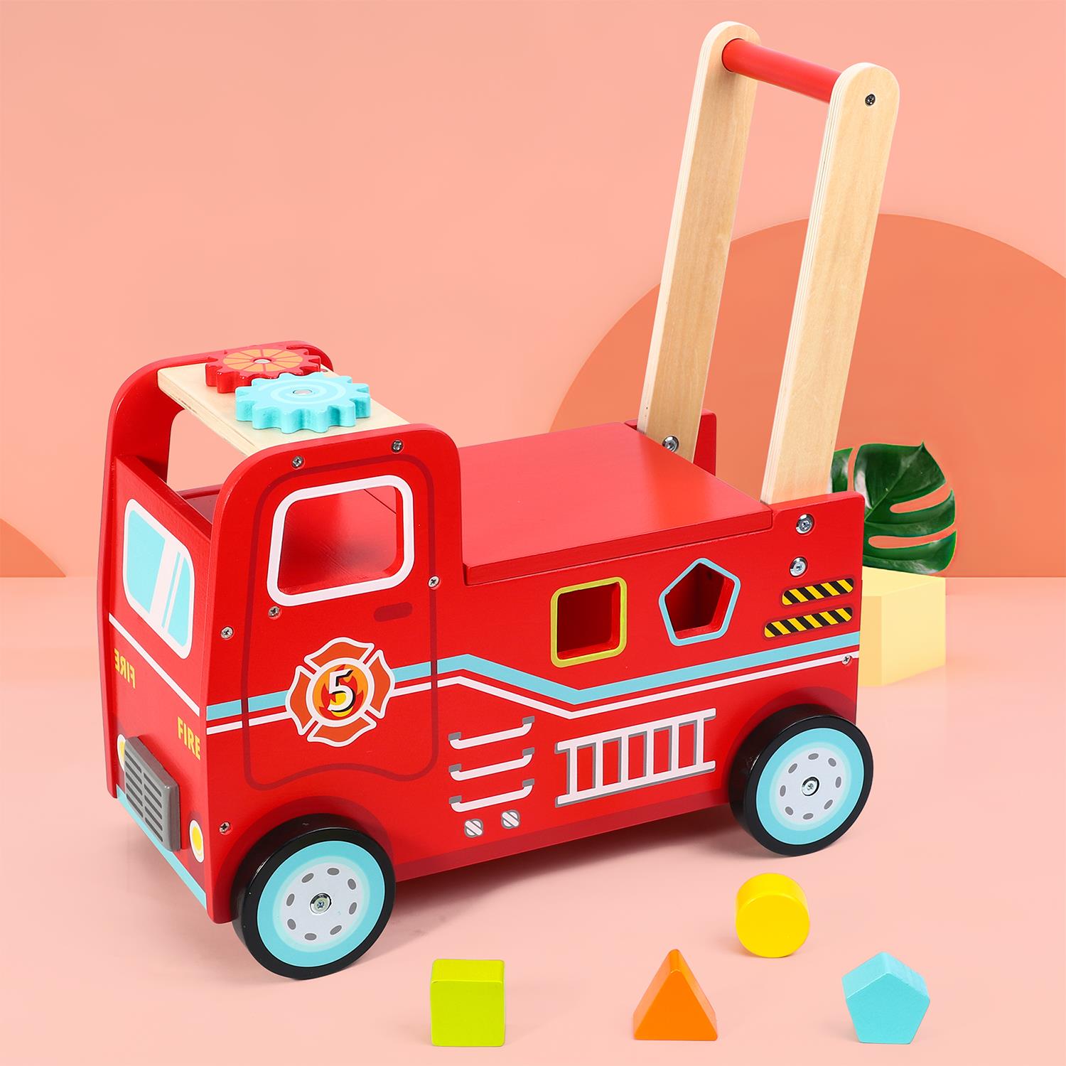 FIRE TRUCK DESIGN – Spark your kid’s imaginative and active play with this fairly detailed fire engine truck ride and push toy. This baby walker's representation of a fire truck, the overall red tone, and the realistic paint will definitely attract your b