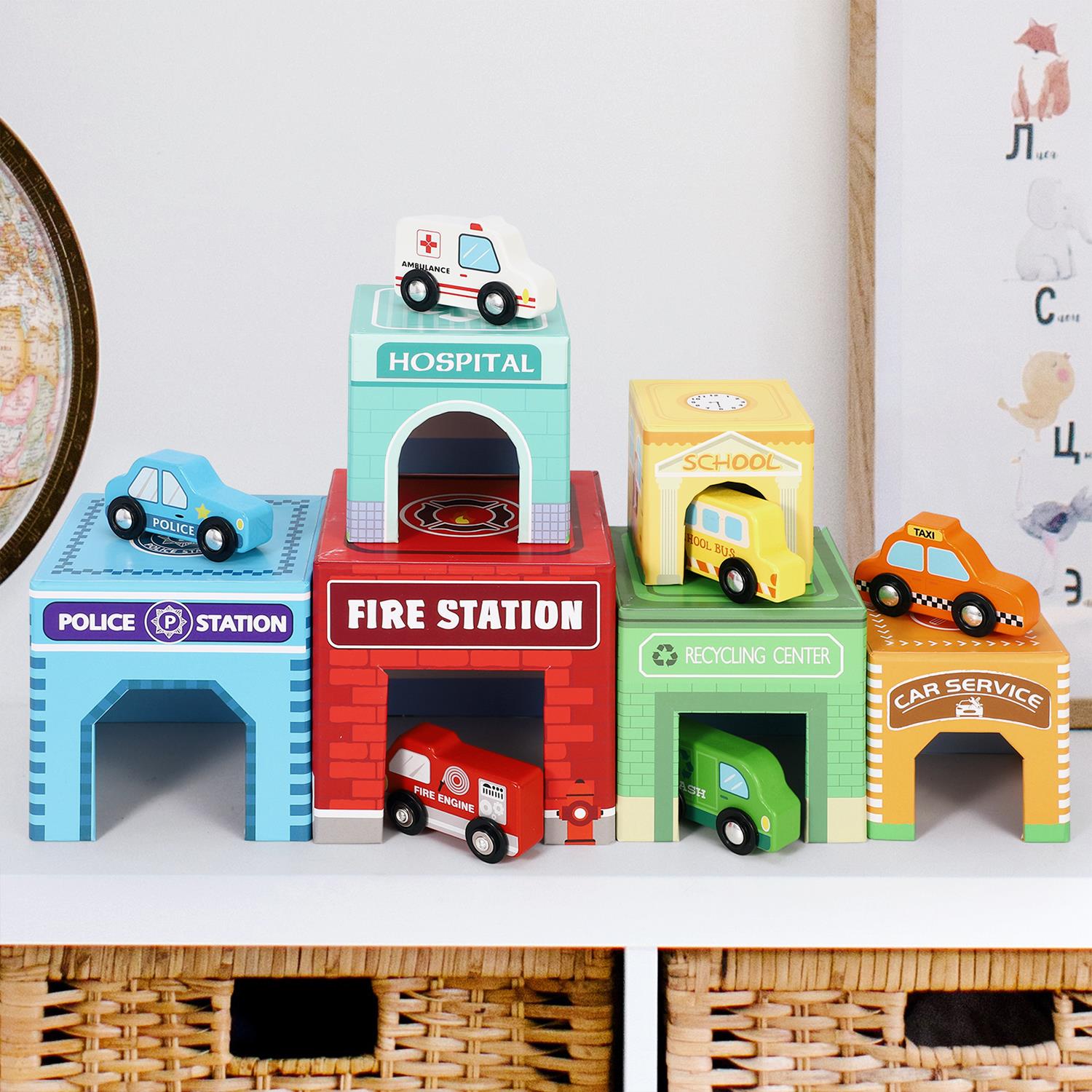 FUN STACKER TOY: A fun stacker that grows in height to build a tall tower and send your emergency cars to the rescue, pick up the kids from school, and even collect the recycling. Play a game of hide-and-seek or mix & match with your friends! Nesting and