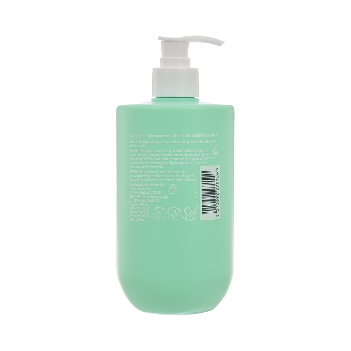 Experience the refreshing tropical scent of coconut with Sol Beauty Shower Cream. Enriched with Coconut Oil, Argan Oil, and Vitamin E, this vegan-friendly and cruelty-free shower gel deeply moisturises and smooths your skin, leaving it soft and revitalised. The convenient pump dispenser ensures easy application, making it a perfect addition to your daily cleansing routine. Enjoy a nourishing and luxurious shower experience with every use.