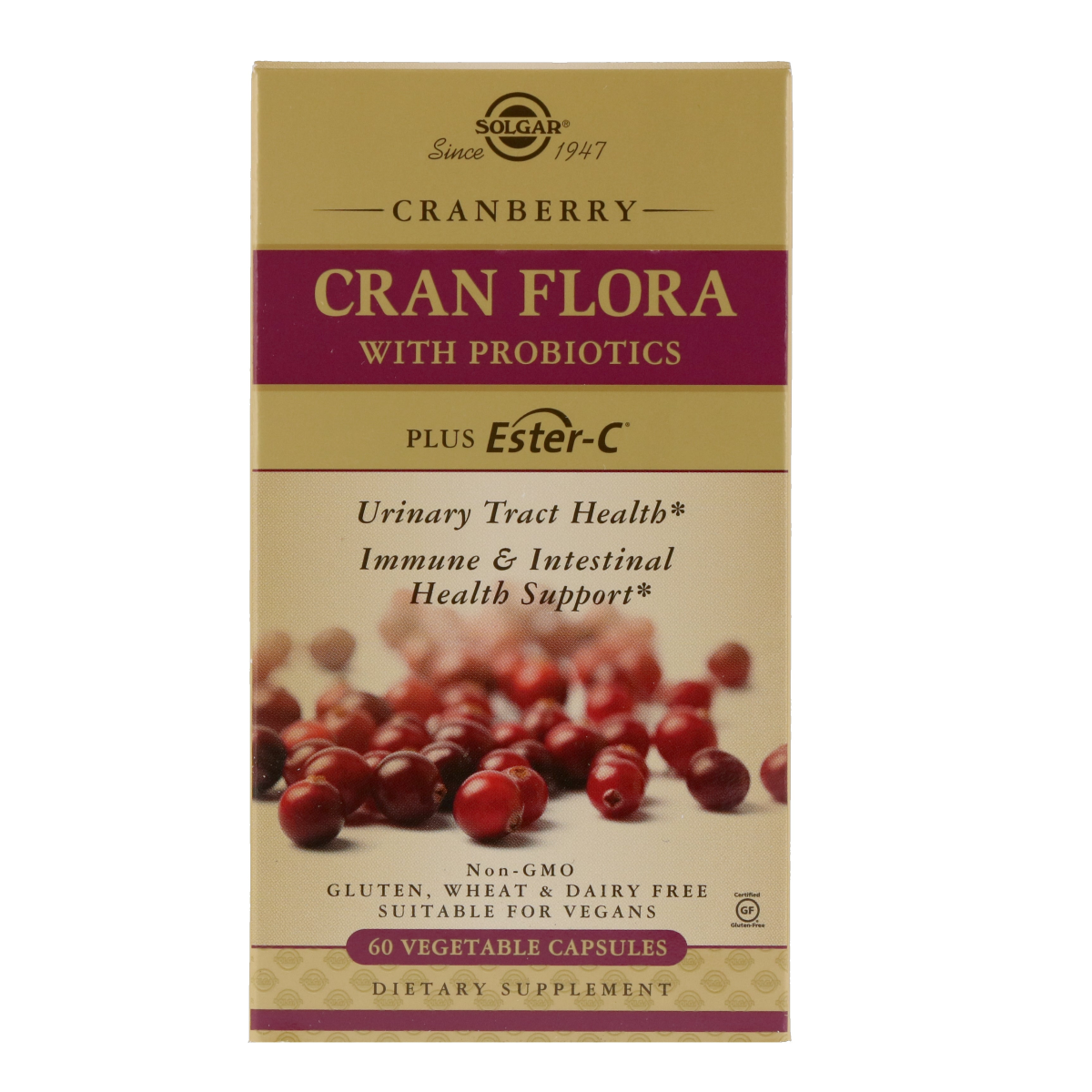 Since 1947 Cranberry Plus Ester-C Urinary Tract Health Immune & Intestinal Health Support Non-GMO Wheat Free & Dairy Free Suitable For Vegans Certified Gluten-Free Dietary Supplement Cran Flora is specially formulated to offer a comprehensive blend of highly concentrated Cranberry Powder, L. Acidophilus, and Ester-C in a convenient 2 a day dosage form. This unique combination promotes the health of the urinary tract and the intestines, while also supporting a healthy immune system. In just 2 vegetable capsules, Cran Flora provides the equivalent of 40,000 mg [40 g] of fresh cranberries without the calories of juice!