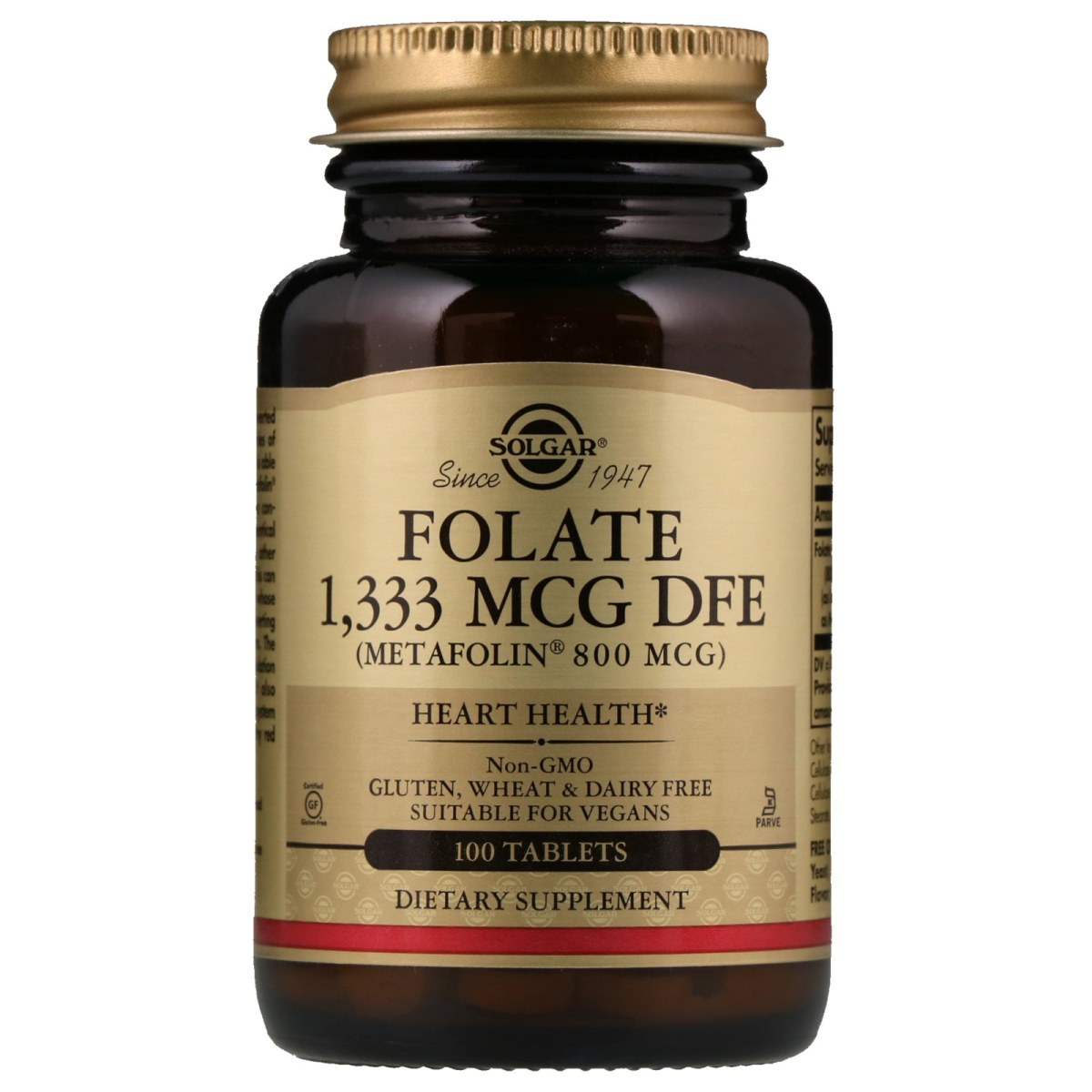 Since 1947 (Metafolin 800 mcg) Heart Health Non-GMO Gluten, Wheat & Dairy Free Suitable for Vegans Certified Gluten Free Kosher Parve Dietary Supplement Folic Acid must first be converted to its active form by a series of biochemical steps, before it is able to be used by the body. Metafolin (L-methylfolate) requires no conversion because it is bioidentical to the bio-active form. In other words, it is 'body-ready'. This can be useful for individuals whose bodies have difficulty converting folic acid to its active form. The active folate in this formulation promotes heart health. It also supports a healthy nervous system and the formation of healthy red blood cells.