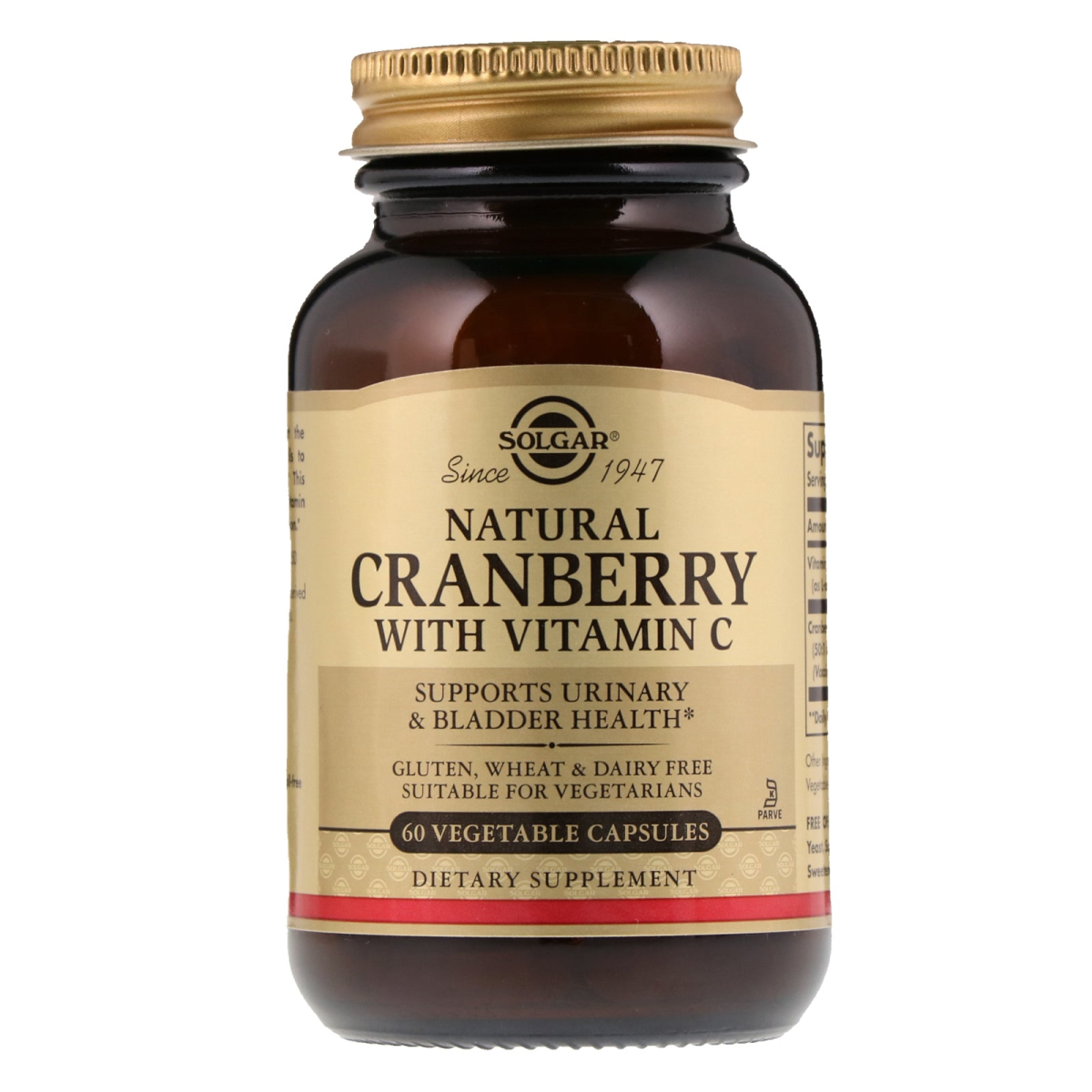 Since 1947 Supports Urinary & Bladder Health Gluten, Wheat & Dairy Free Suitable for Vegetarians Dietary Supplement Kosher Parve Cranberry help support the integrity of bladder walls to promote urinary health. This product also contains vitamins C to support immune function. Solgar natural cranberry is derived exclusively from whole cranberries.