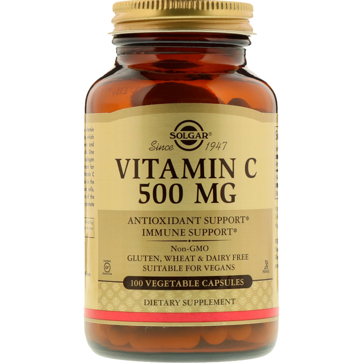 Since 1947 Antioxidant Support Immune Support Non-GMO Gluten, Wheat & Dairy Free Suitable for Vegans K-Parve Dietary Supplement Vitamin C is water-soluble vitamin that helps fight free radicals, which can lead to oxidative stress and the premature aging of cells. One of its primary functions is collagen formation, which is important for healthy skin and joints. Vitamin C also plays and essential role in the functioning of white blood cells, which are vital components of the immune system. It helps to promote cardiovascular health.