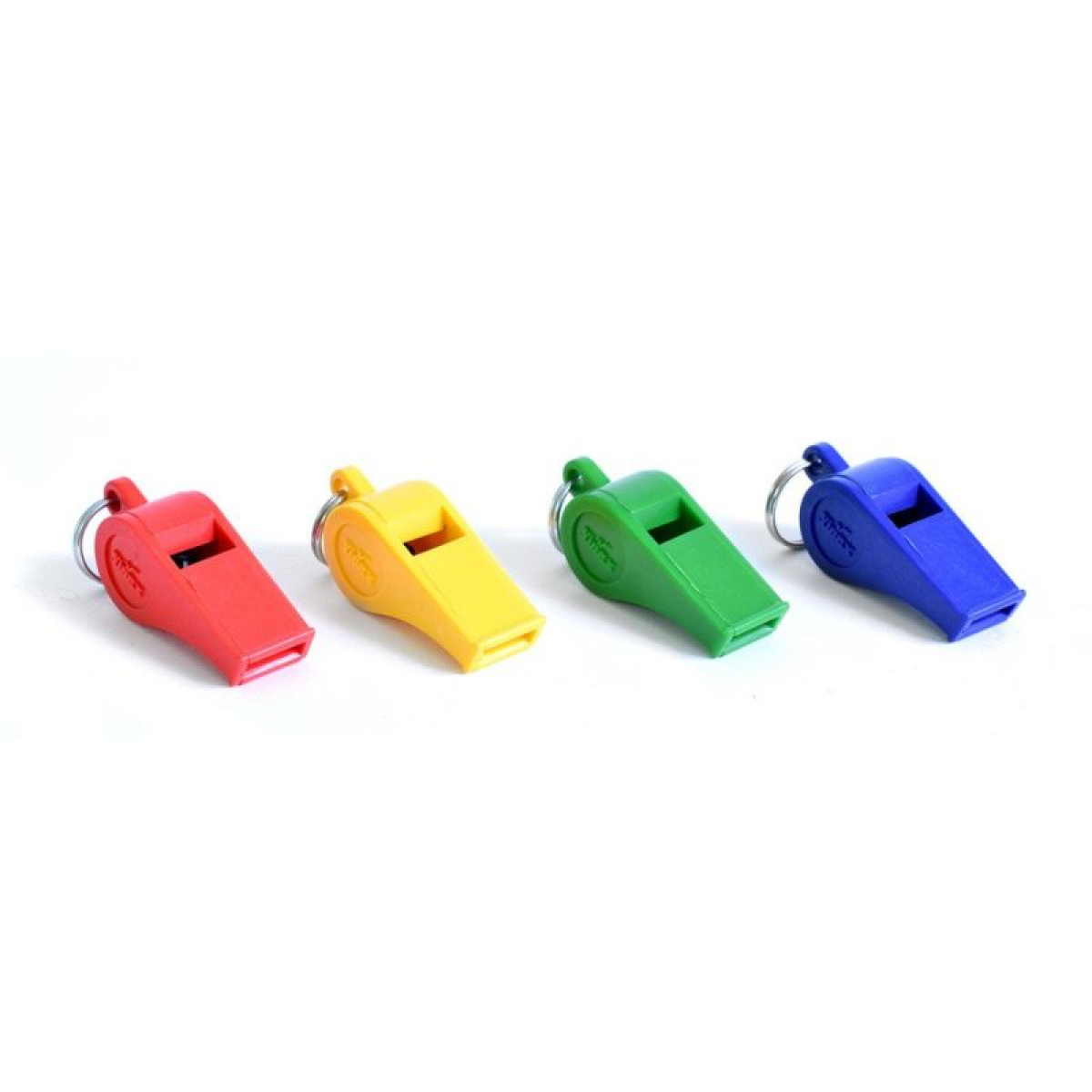 • Set of whistles in 4 colors: green, red, blue, yellow