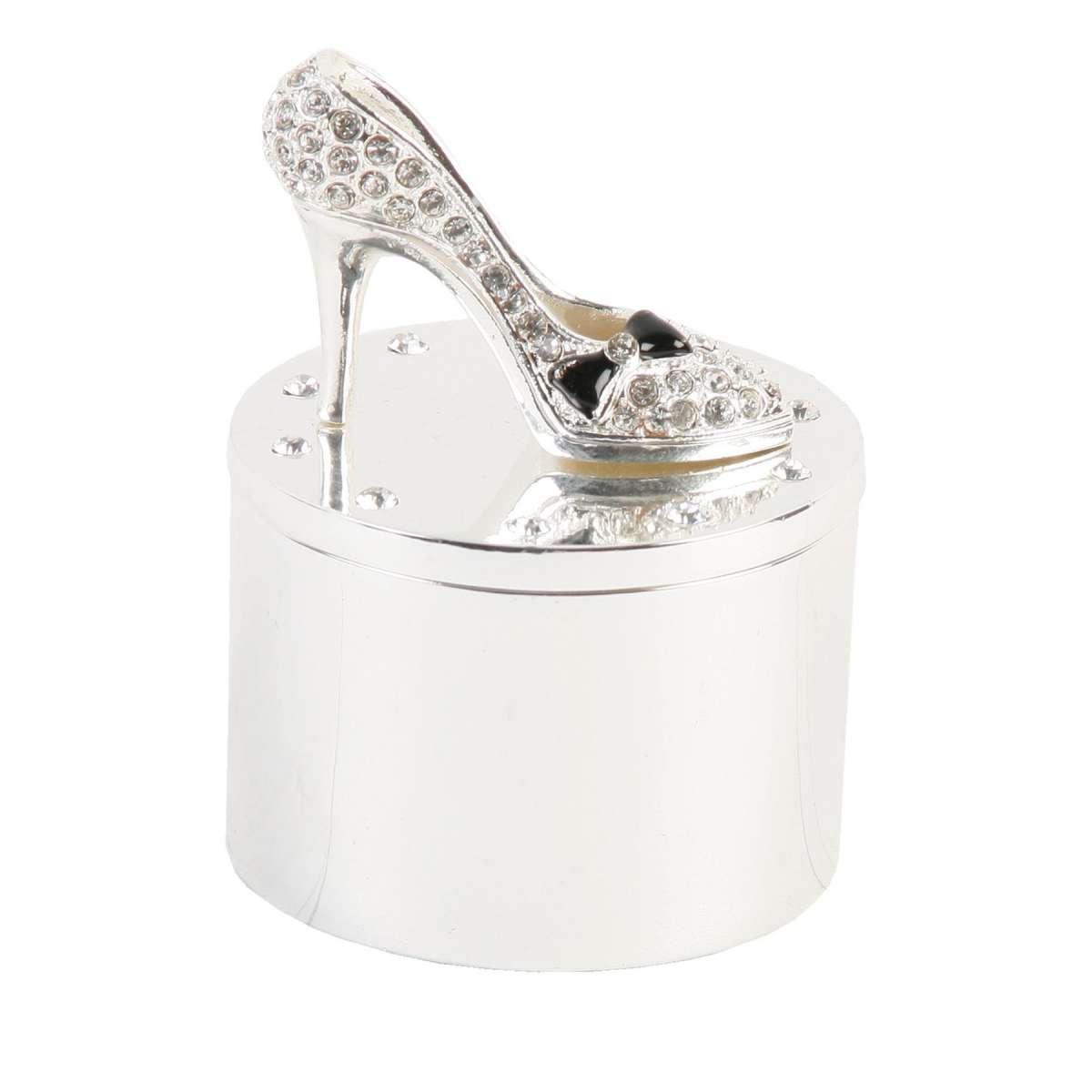 A gorgeous trinket box from SOPHIA�. This 2 inch trinket box is embellished with a beautiful crystal finished high heel shoe design and has a gorgeous cream fabric lining. The trinket box is perfect for storing treasured keepsake items or a special piece of jewellery.