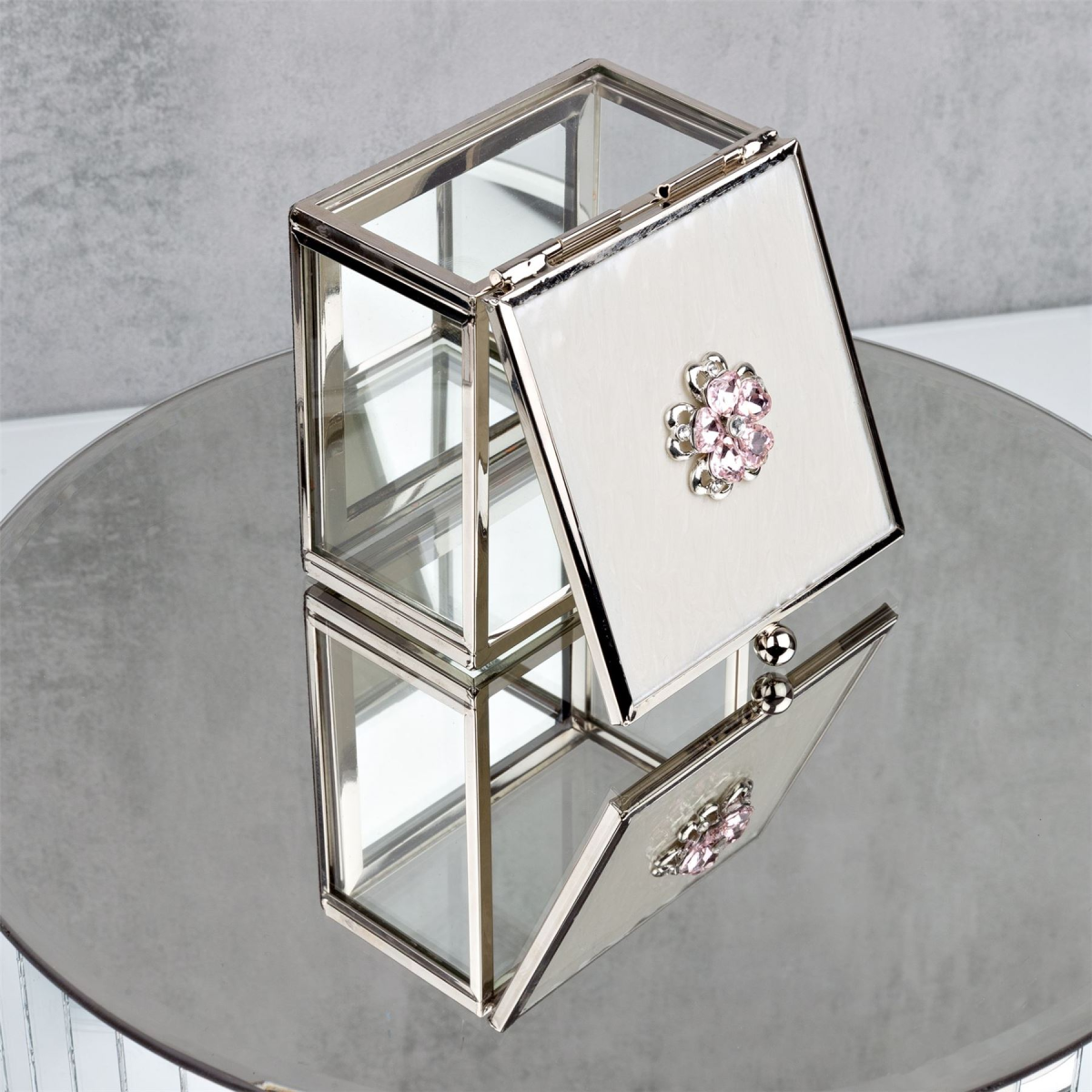 An elegant trinket box with an beautifully soft pink flower embelishment and pearl white epoxy inlay. From the SOPHIA� Classic Collection - the home of style and sophistication in women's giftware.