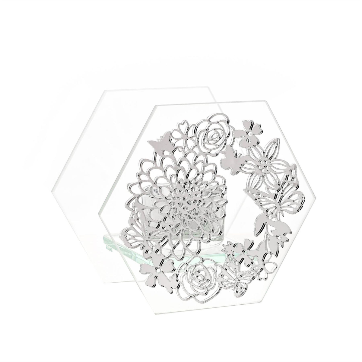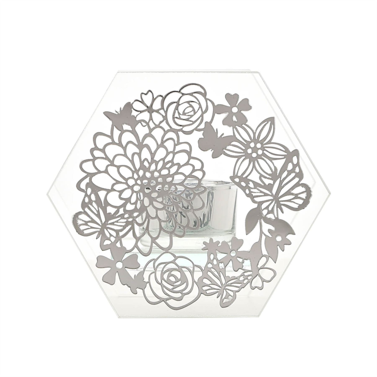 Sophia Mirrored Floral Pattern Tea Light Holder