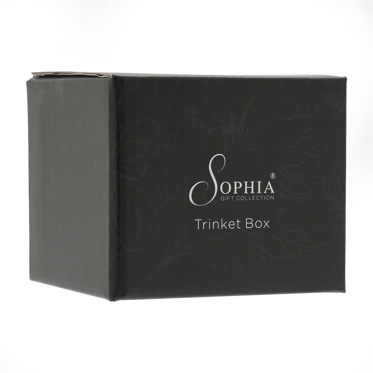 This butterfly box is certain to add some glitz to anyone's trinkets. Perfectly crafted with both style and sparkle in equal measure, this is sure to serve as an excellent gift option for loved ones. Details: Butterfly trinket box Pink and blue Sophia black gift box Perfect gift idea