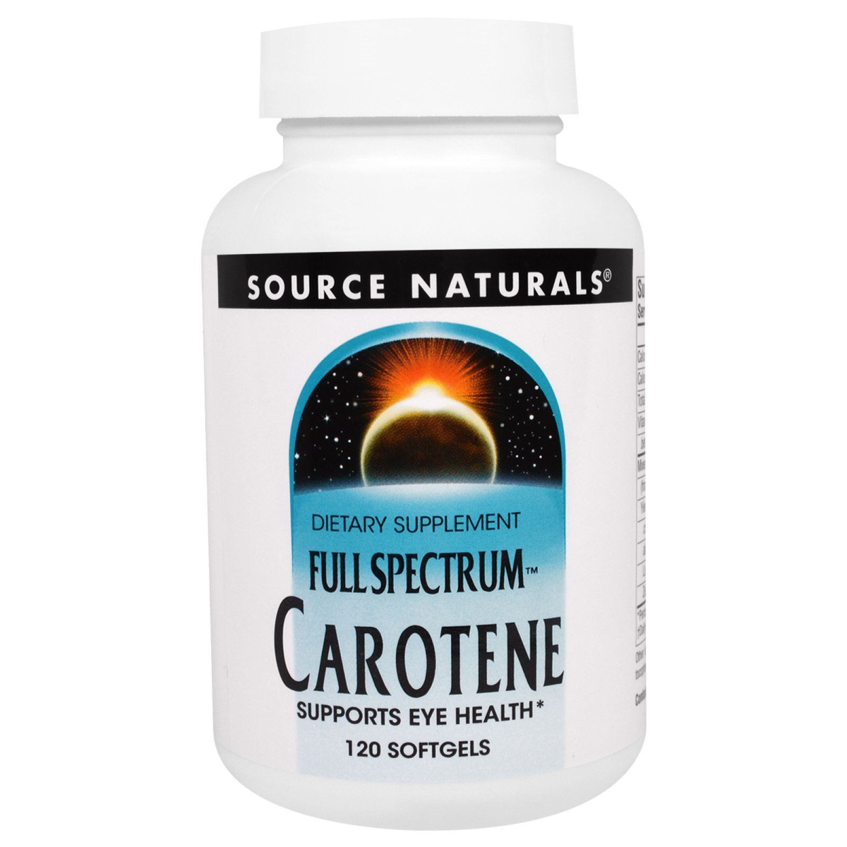 Dietary Supplement Supports Eye Health Source Naturals Full Spectrum Carotene, from dunaliella salina algae, helps support eye health. It is an excellent source of pro-vitamin A, providing 500% DV as a blend of cis- and trans-beta-carotene, which is converted in the body to the active form of vitamin A as needed. The broad spectrum of carotenoids in Full Spectrum Carotene act as antioxidants. Vitamin A is an essential nutrient required for healthy skin, eyes, mucous membranes, cell growth and immune defense.