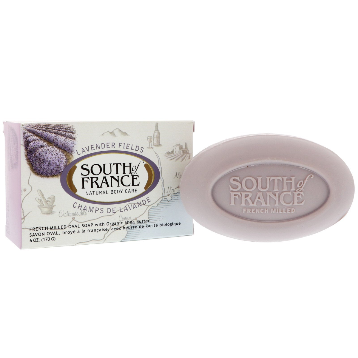 South of France, Lavender Fields, French Milled Oval Soap with Shea Butter, 6 oz (170 g)