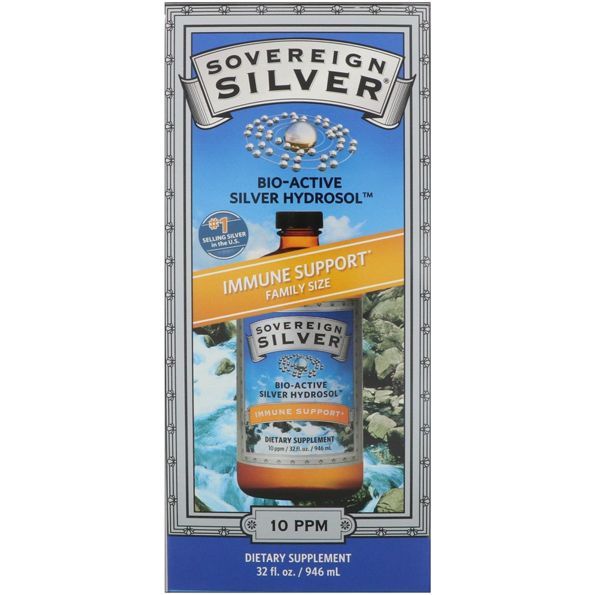 #1 Selling Silver in the U.S. Immune Support Family Size 10 PPM Dietary Supplement Vegan Allergen-, Gluten- and GMO-Free Why Bio-Active Silver Hydrosol Over Any Other Form of Silver? "Colloidal Silver" has been used for over 125 years in countless applications, and encompasses a wide variety of silver products. Many products contain (claimed or unclaimed) salts, proteins, compounds or stabilizers - all of which affect silver's safety (elimination from the body) and efficacy. Bio-Active Silver Hydrosol represents the ultimate refinement of the colloidal silver category. It contains greater than 98% bio-active silver in pharmaceutical-grade purified water. Nothing else. Our unique silver species, a mixture of silver ions and silver nanoclusters, with a verified and unmatched particle size, remains in its most active state for use within the body. Why reach for just any colloidal silver product? Bio-Active Silver Hydrosol offers the safest and most effective concentration. This is why Sovereign Silver is the #1 selling silver brand on the market. The Path to Safe and Effective Use of Silver Start Positive. If silver is not positively charged, it is not bio-active. At best, most colloidal silver products contains only 10% charged silver. Sovereign Silver contains greater that 98% bio-active silver ions and silver nanoclusters, making it exponentially more powerful than other brands. Think Absorption. The smaller the particle size, the easier it is for the body to absorb and eliminate. Sovereign Silver features an unprecedented particle size of 0.8 nanometers, verified by 3rd party. No other silver can prove the same. Be Safe. When it comes to concentration, more is not always better. Our tiny particle size yields greater surface area and higher efficiency, making our 10 ppm (parts per million) product more effective than competing brands containing up to 500 ppm. Taken 7 times a day for 70 years, Sovereign Silver still falls below the EPA's (Environmental Protection Agency) daily oral Reference Dose (RfD) for silver.†Embrace Purity. Sovereign Silver has only two ingredients: 99.999% pure silver and pharmaceutical-grade purified water. It does not contain added salts or proteins that render other silver products less effective. Plus, it is packaged in non-leaching glass bottles, never plastic, to guarantee purity throughout its shelf-life. Sovereign Silver is vegan. †According to the EPA (CASRN 7440-22-4) daily Oral Silver Reference Dose (RfD) applied to 10 ppm, one may ingest 178,850 servings safely over 70 years.