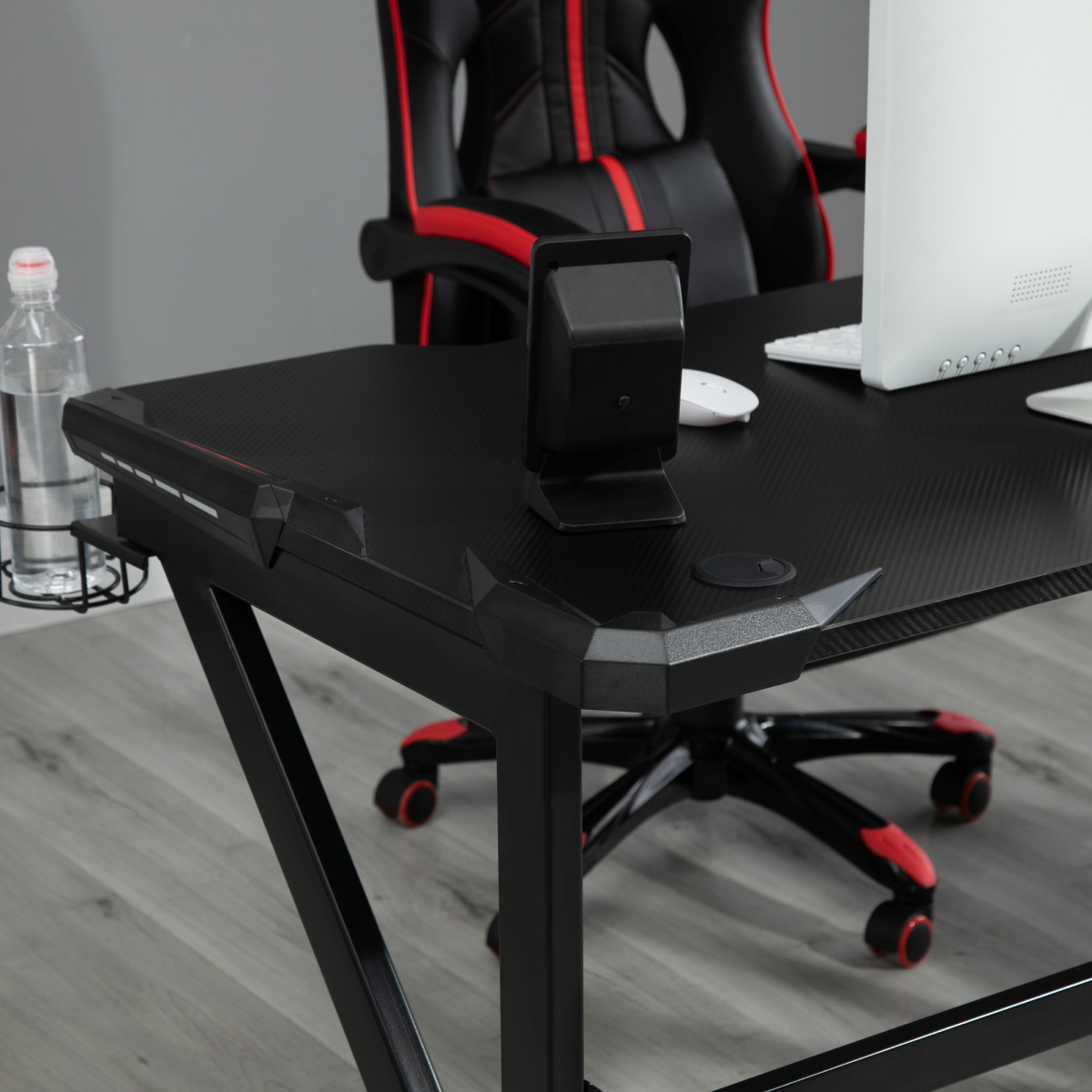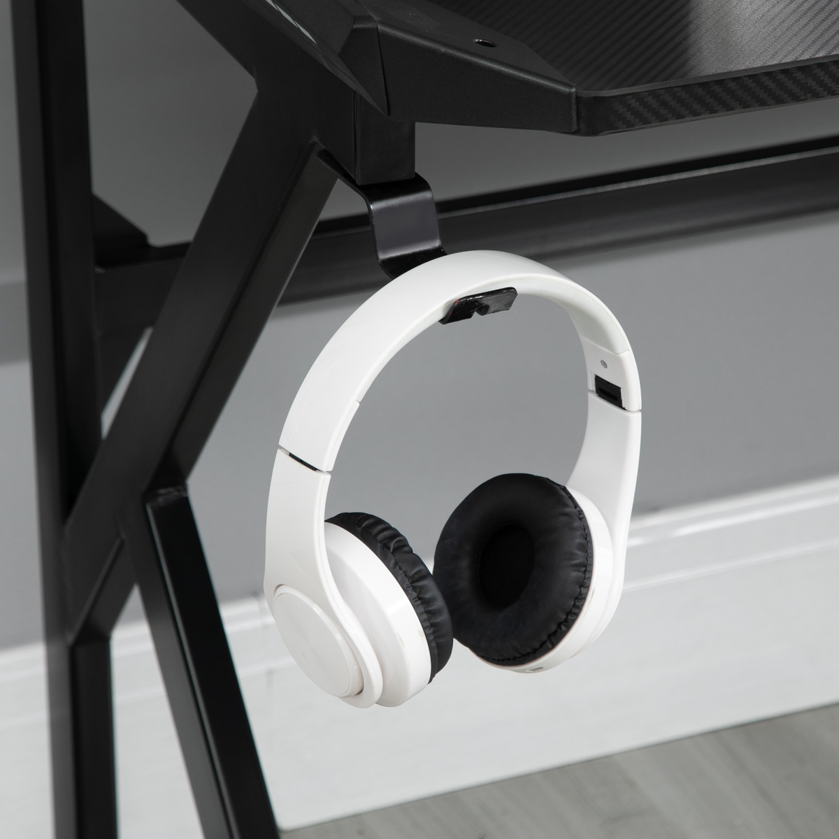 Spacious Gaming Desk Home Racing w/ Steel Frame Cup Headphone Holder Hook