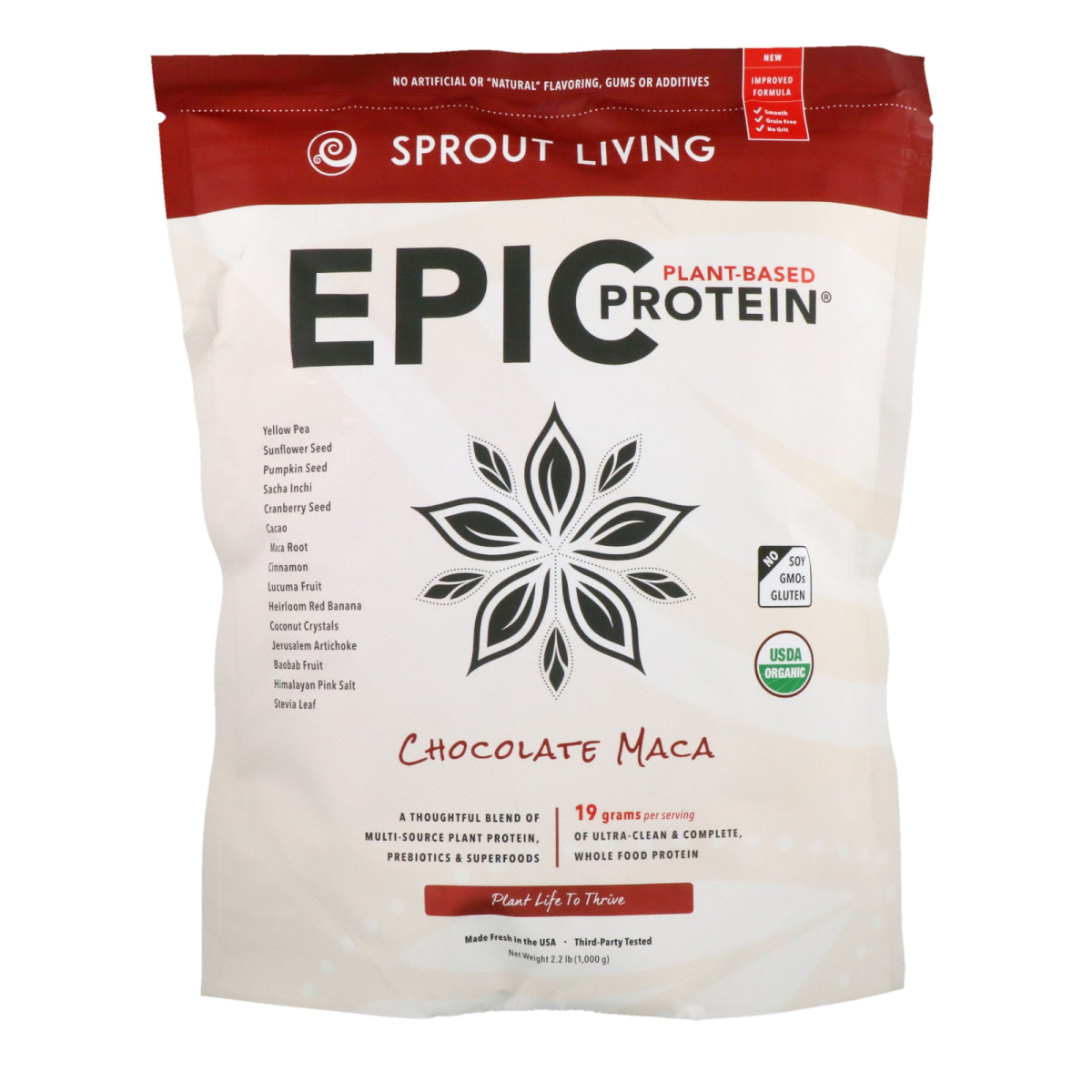 Sprout Living, , Epic Plant-Based Protein, Chocolate Maca, 2.2 lb (1,000 g)