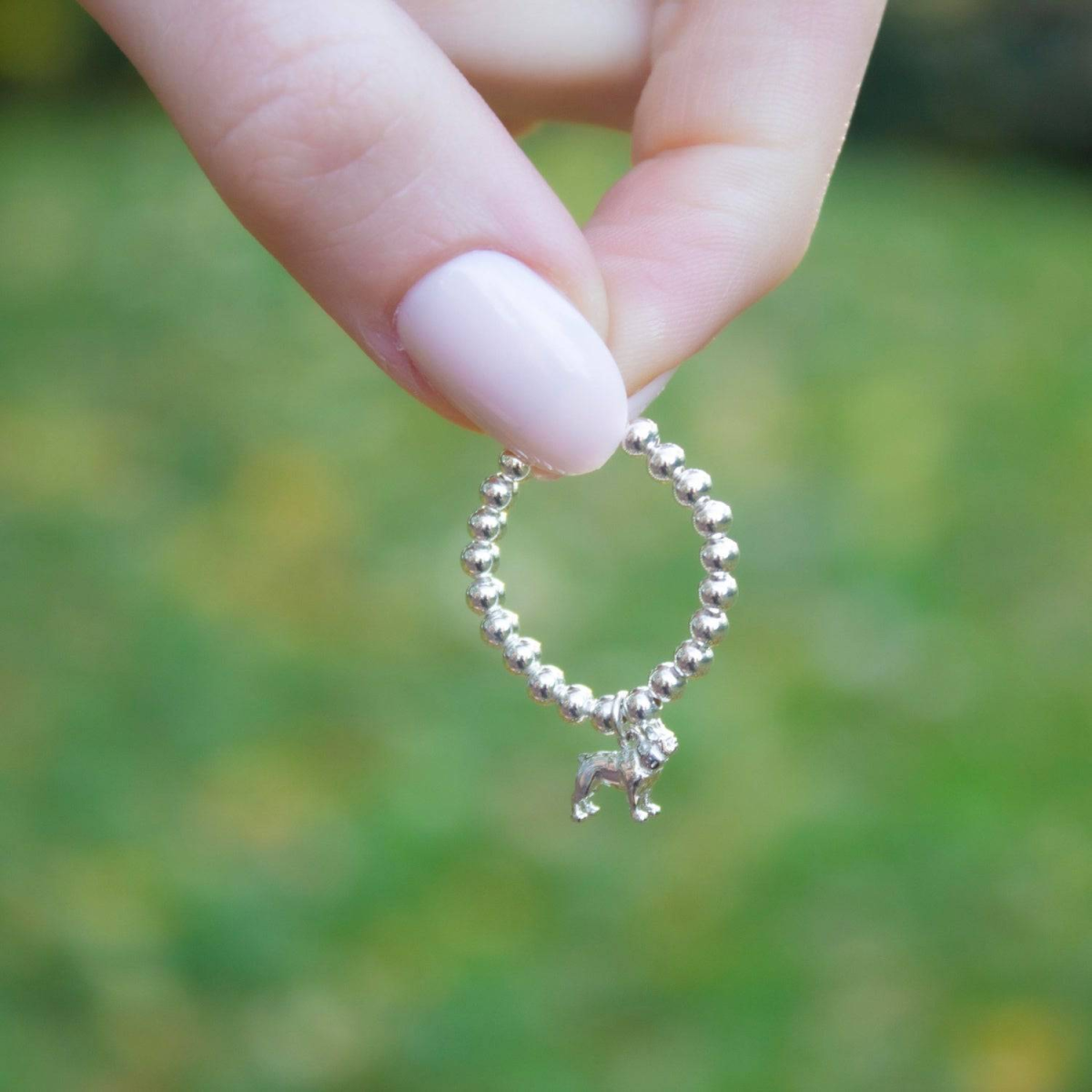 Sterling Silver Ball Bead Ring With French Bulldog Charm