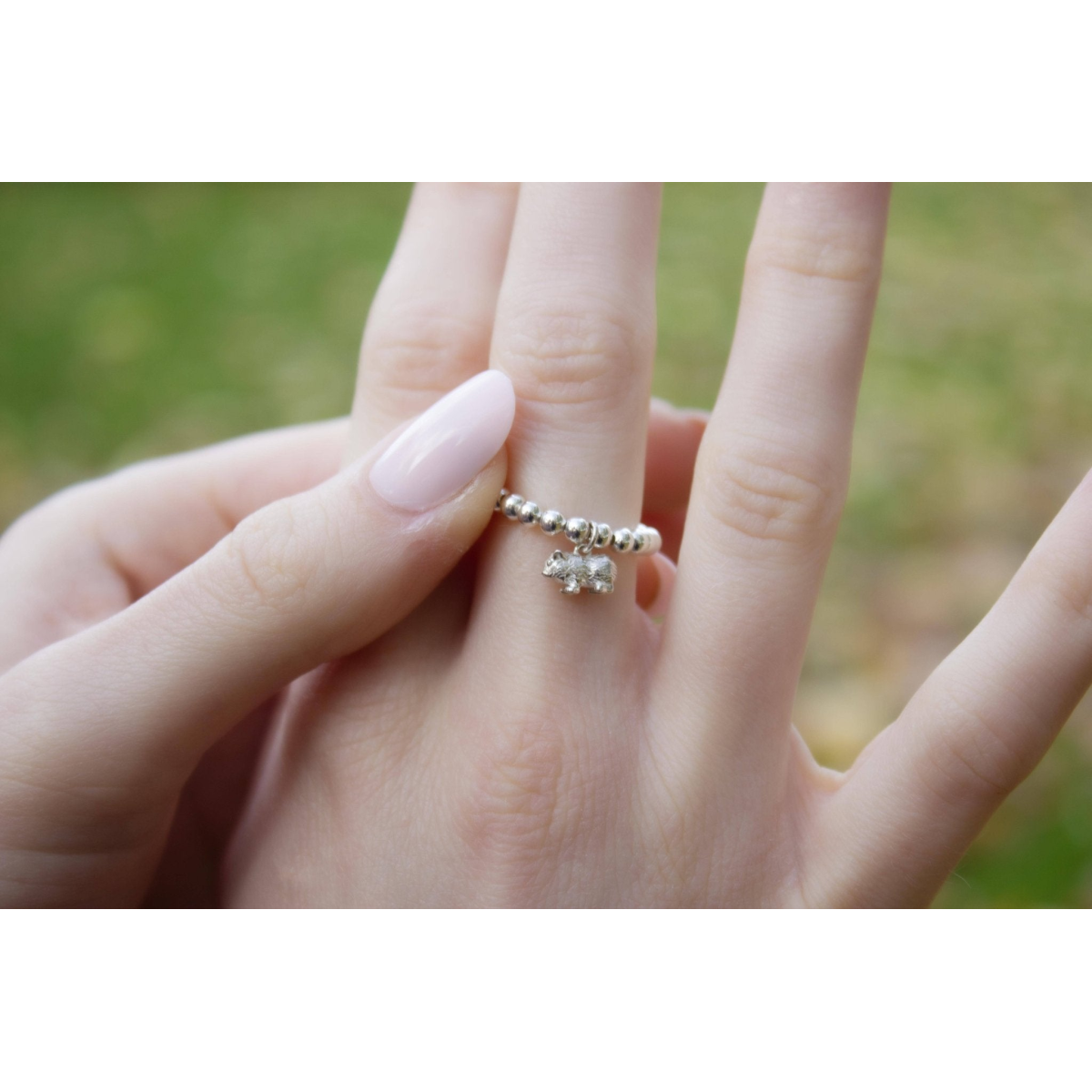 Sterling Silver Ball Bead Ring With Guinea Pig Charm