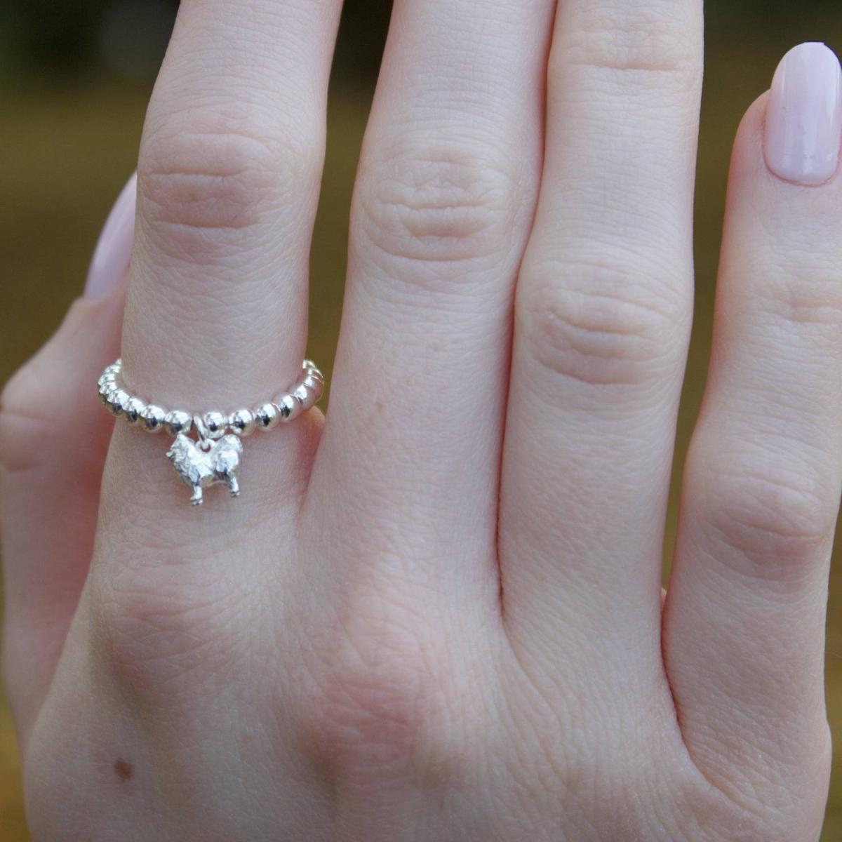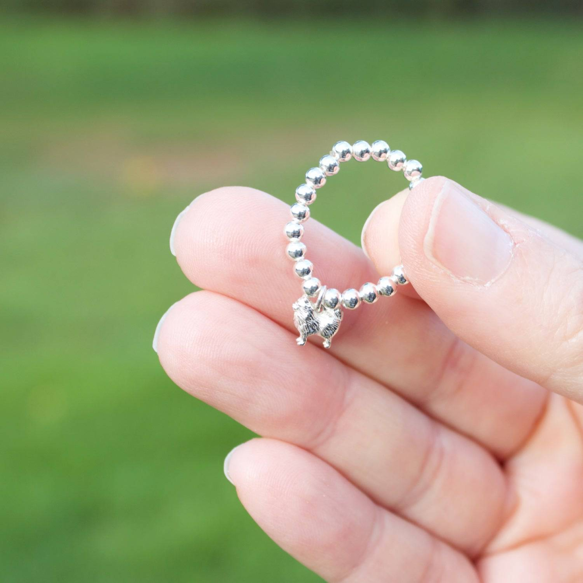 Sterling Silver Ball Bead Ring With Pomeranian Charm